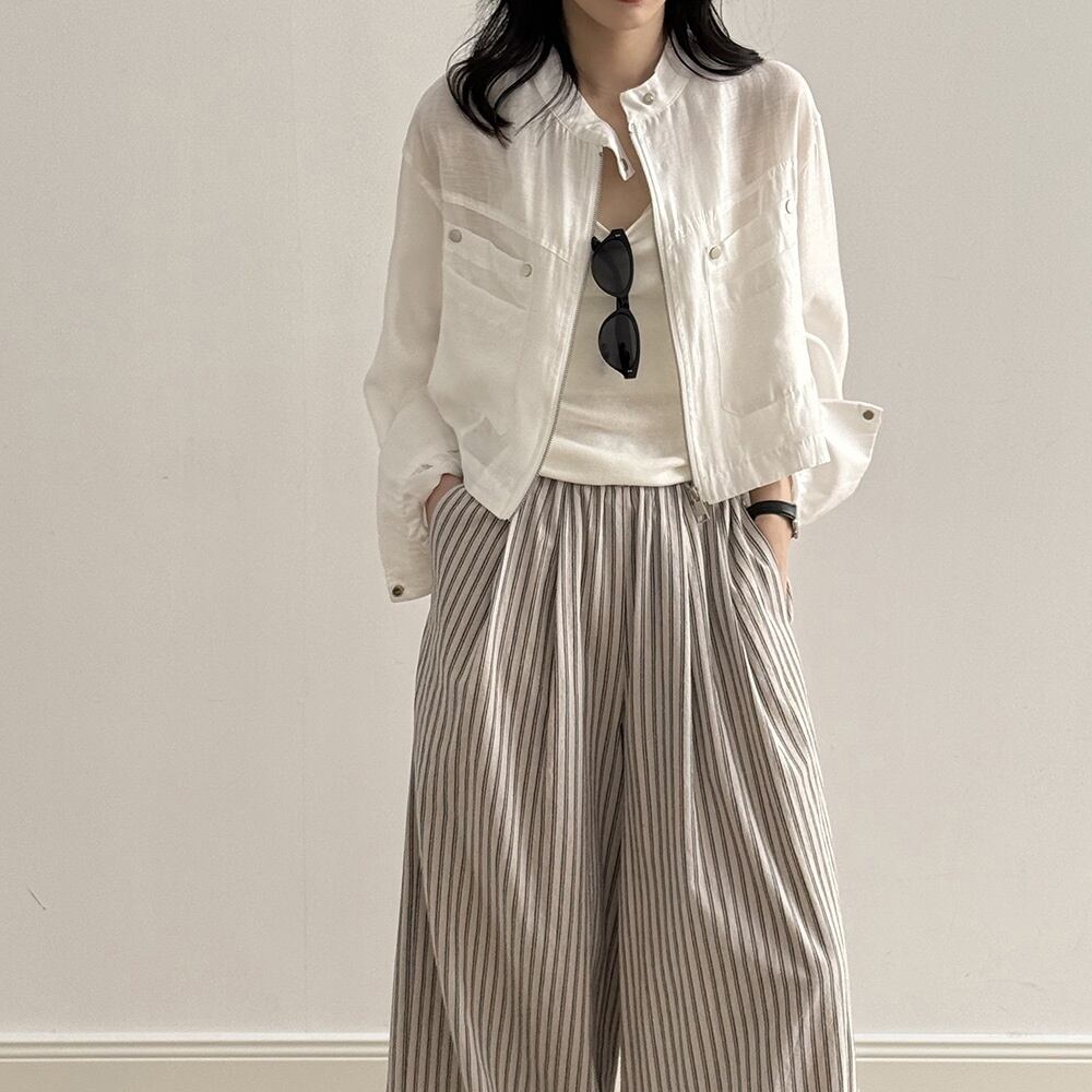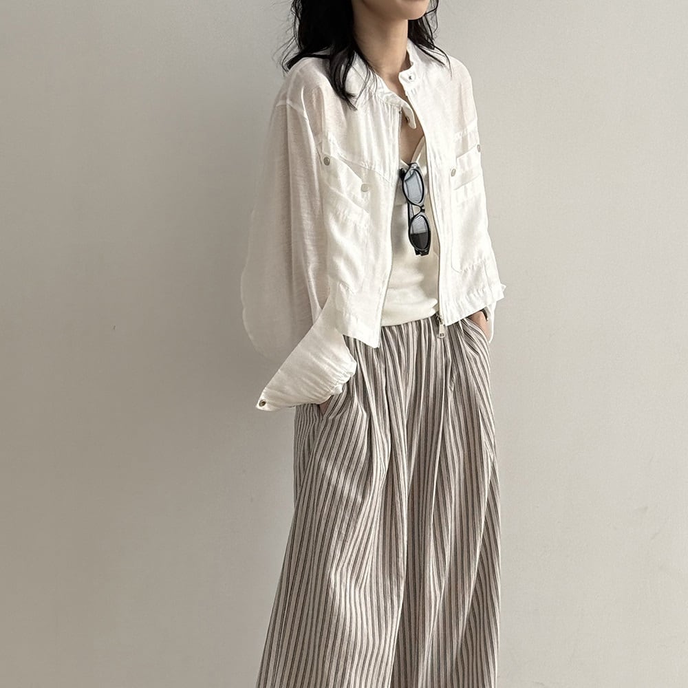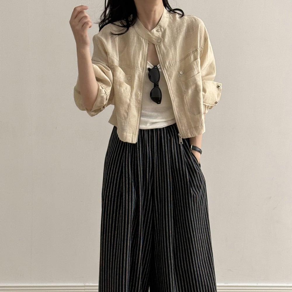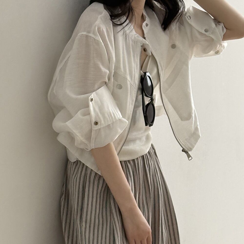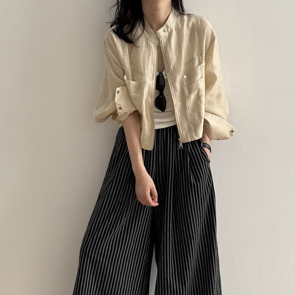 ナチュラルな風合いが魅力のライトジャケット。 コンパクトな丈感とスタンドカラーが洗練された印象を演出し、胸元のポケットディテールで程よいカジュアルさをプラス。 羽織るだけでこなれ感のあるスタイリングが完成します。 【商品詳細】 サイズ: ▼Mサイズ 肩幅45cm, 胸囲90cm, 裾丈94cm, 袖丈56cm, 着丈48cm ▼Lサイズ 肩幅46cm, 胸囲94cm, 裾丈98cm, 袖丈57cm, 着丈49cm (海外製品のため1~3㎝程度誤差がある場合がございます。) 素材:ポリエステル、リネン、その他 カラー:ホワイト、ベージュ ※着用モデル情報 身長・体重 155cm 47㎏ スリーサイズ 84㎝ 63cm 85cm 着用サイズ M 【洗濯】 手洗いや専門のドライクリーニングをお勧めします。 30度以上のお湯に長時間浸さないでください。 他の色のお洋服と分けて洗濯してください。 アイロンは、低温にしてください。 ■Evermodの人気商品一覧はこちらからご確認いただけます。 https://onlinestore.evermod.shop/categories/4311097 ■<送料無料まであと少し>の方は、プライス別にもアイテム検索できます。 https://onlinestore.evermod.shop/categories/5070150 【商品発送について】 こちらの商品は海外店舗より直接発送となる為、 ご入金から発送まで10日~3週間前後いただきます。 【注意事項】 ・タイミングによっては 商品在庫切れにより 注文キャンセルとさせていただく恐れもございますので、 予めご了承くださいませ。 ・こちらは輸入品となります。 日本製とは検品基準が異なる為、新品未使用品でも ごくわずかな汚れや傷がある場合もございます。 ・商品の色味は、お手持ちのスマートフォンの画面に よって実物と若干異なる場合がございます。 ・イメージ違いやサイズ交換等、お客さまご都合による 交換、返品は対応出来かねます。 ■(重要)ご購入前にこちら(Shop Guide)をお読みください https://onlinestore.evermod.shop/about