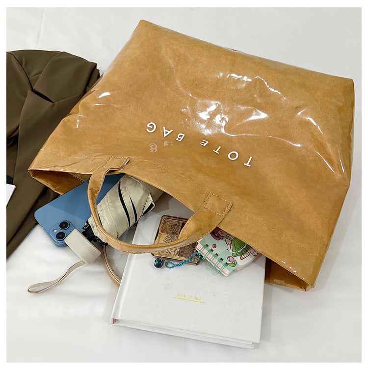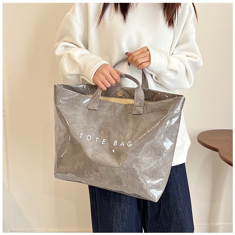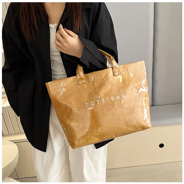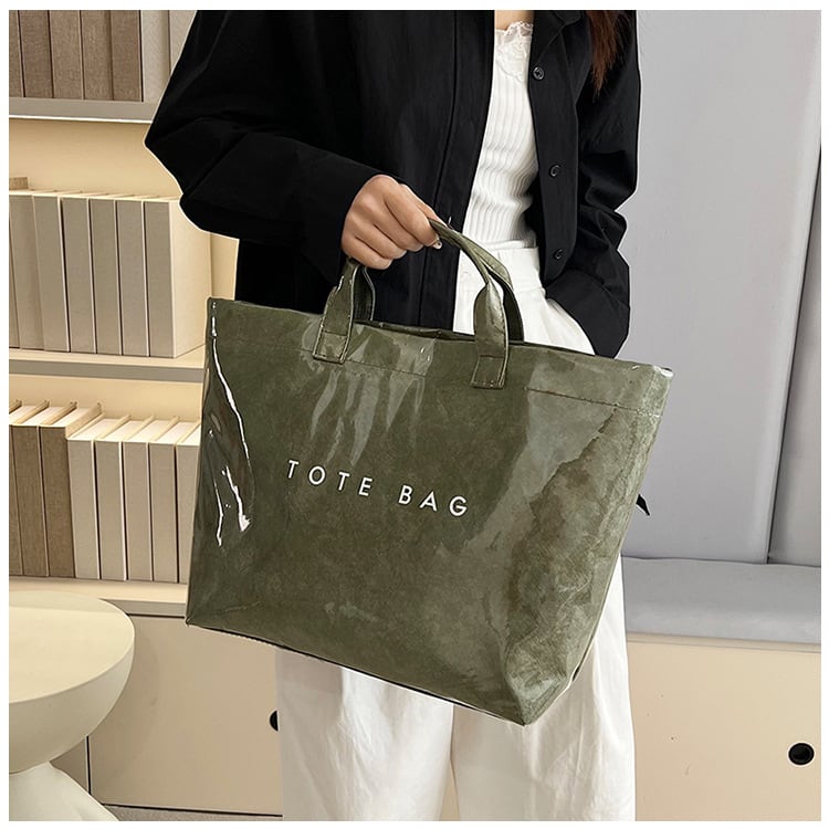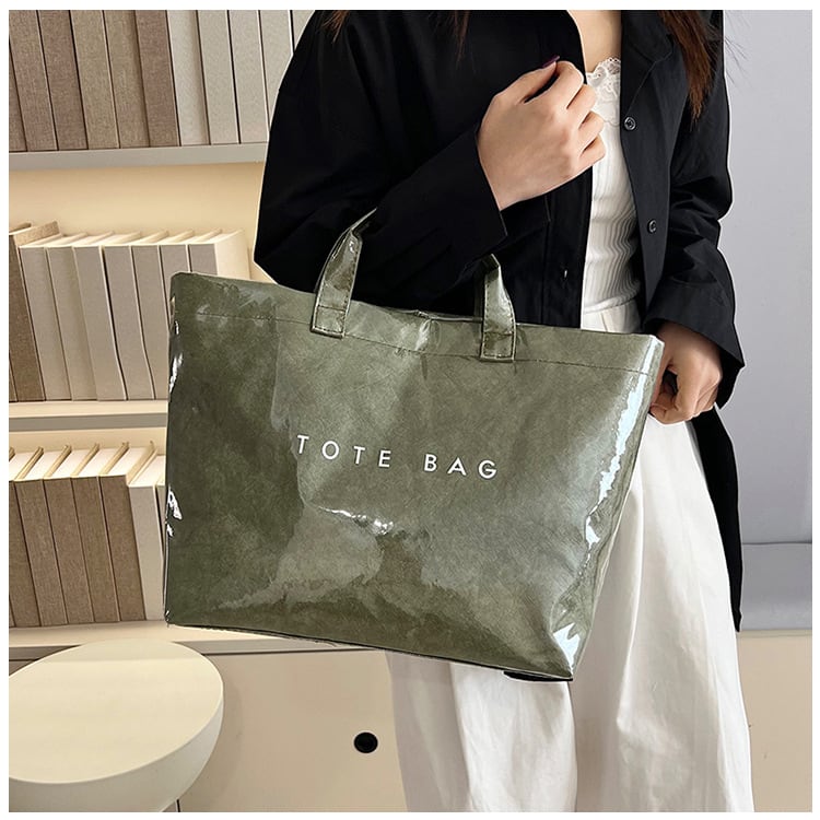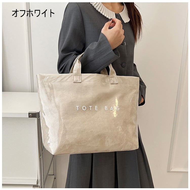 光沢感のあるコーティングが目を惹くトートバッグ。 フロントのシンプルな「TOTE BAG」ロゴが遊び心をプラスし、 デイリーからお出かけ、通勤・通学にも活躍。 【商品詳細】 サイズ: 上幅45cm 下幅34cm 高さ30cm 奥行14cm 持ち手9cm (1~3㎝程度誤差がある場合がございます。) 重さ:0.2Kg カラー:ブラック、グレー、グリーン、キャメル、オフホワイト ■Evermodの人気商品一覧はこちらからご確認いただけます。 https://onlinestore.evermod.shop/categories/4311097 ■<送料無料まであと少し>の方は、プライス別にもアイテム検索できます。 https://onlinestore.evermod.shop/categories/5070150 【商品発送について】 こちらの商品は海外店舗より直接発送となる為、 ご入金から発送まで10日~3週間前後いただきます。 【注意事項】 ・タイミングによっては 商品在庫切れにより 注文キャンセルとさせていただく恐れもございますので、 予めご了承くださいませ。 ・こちらは輸入品となります。 日本製とは検品基準が異なる為、新品未使用品でも ごくわずかな汚れや傷がある場合もございます。 ・商品の色味は、お手持ちのスマートフォンの画面に よって実物と若干異なる場合がございます。 ・イメージ違いやサイズ交換等、お客さまご都合による 交換、返品は対応出来かねます。 ■(重要)ご購入前にこちら(Shop Guide)をお読みください https://onlinestore.evermod.shop/about