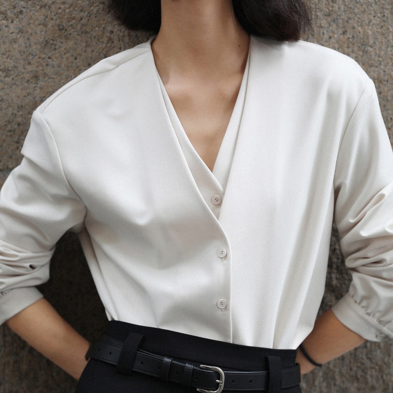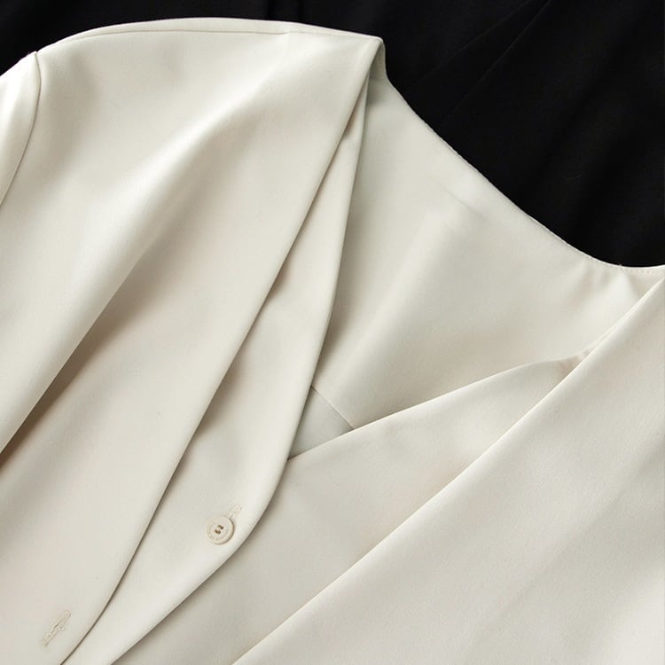 洗練された印象を与えるボタンデザインが魅力のVネックブラウス。 滑らかな落ち感のある生地が上品な雰囲気を演出し、シンプルながらもモード感をプラスしてくれます。 ジャケットのインナーとしても、一枚でさらりと着ても絵になる大人のアイテムです。 大き目の作りになります。サイズ表をご確認ください。 【商品詳細】 サイズ: ▼Sサイズ 肩幅38cm, 胸囲104cm, 袖丈56cm, 着丈64cm ▼Mサイズ 肩幅39cm, 胸囲108cm, 袖丈57cm, 着丈65cm ▼Lサイズ 肩幅40cm, 胸囲112cm, 袖丈58cm, 着丈66cm (海外製品のため1~3㎝程度誤差がある場合がございます。) 素材:ポリエステル、ビスコース、スパンデックス カラー:ホワイト、ベージュ ■Evermodの人気商品一覧はこちらからご確認いただけます。 https://onlinestore.evermod.shop/categories/4311097 ■<送料無料まであと少し>の方は、プライス別にもアイテム検索できます。 https://onlinestore.evermod.shop/categories/5070150 【商品発送について】 こちらの商品は海外店舗より直接発送となる為、 ご入金から発送まで10日~3週間前後いただきます。 【注意事項】 ・タイミングによっては 商品在庫切れにより 注文キャンセルとさせていただく恐れもございますので、 予めご了承くださいませ。 ・こちらは輸入品となります。 日本製とは検品基準が異なる為、新品未使用品でも ごくわずかな汚れや傷がある場合もございます。 ・商品の色味は、お手持ちのスマートフォンの画面に よって実物と若干異なる場合がございます。 ・イメージ違いやサイズ交換等、お客さまご都合による 交換、返品は対応出来かねます。 ■(重要)ご購入前にこちら(Shop Guide)をお読みください https://onlinestore.evermod.shop/about