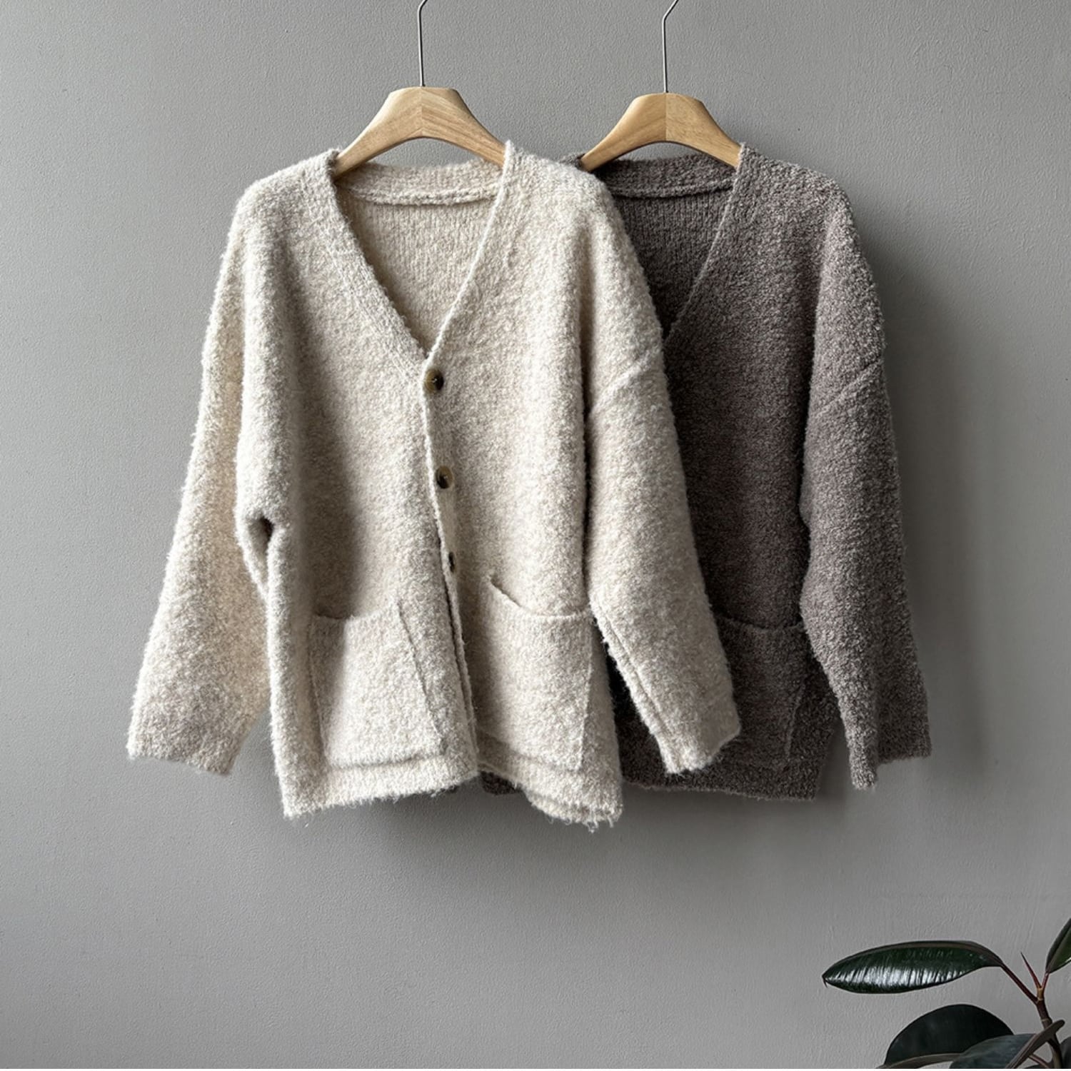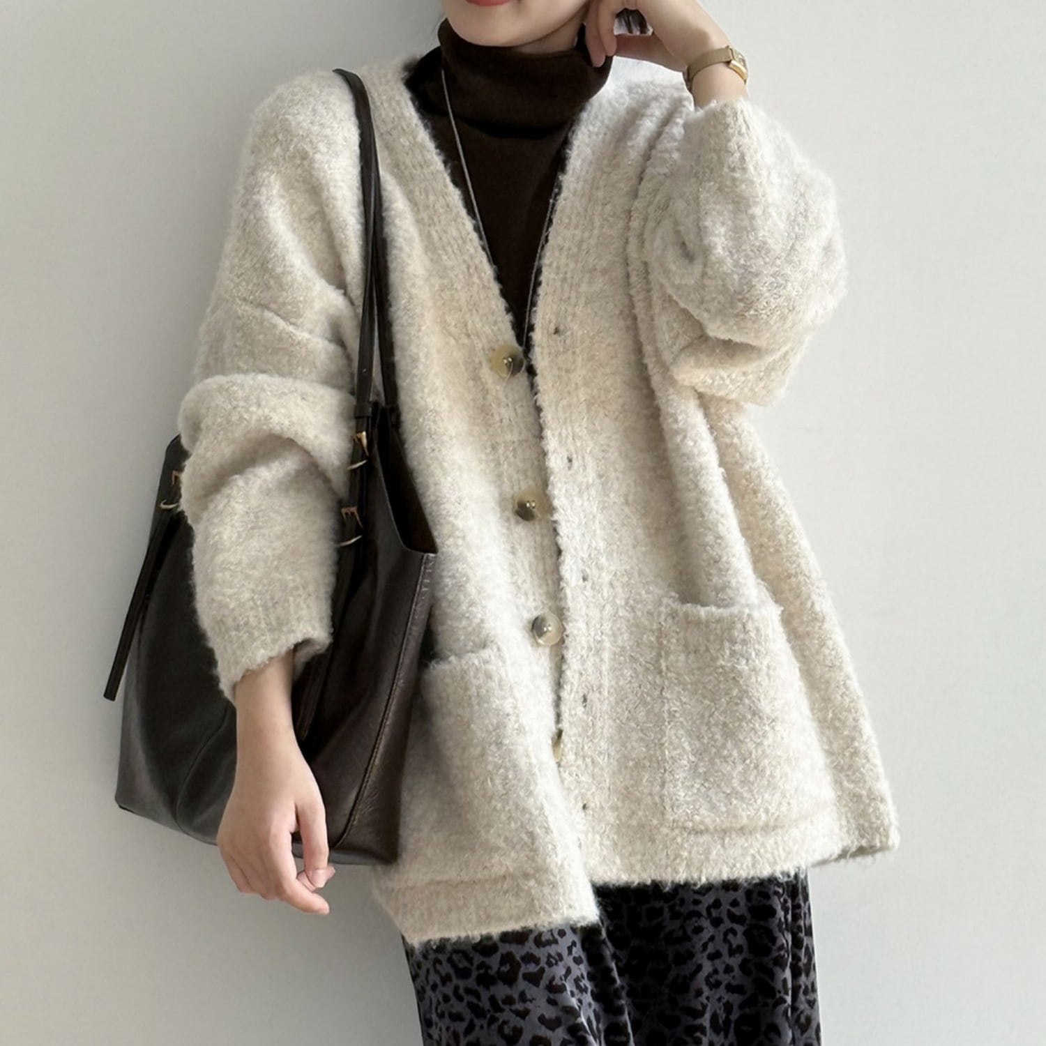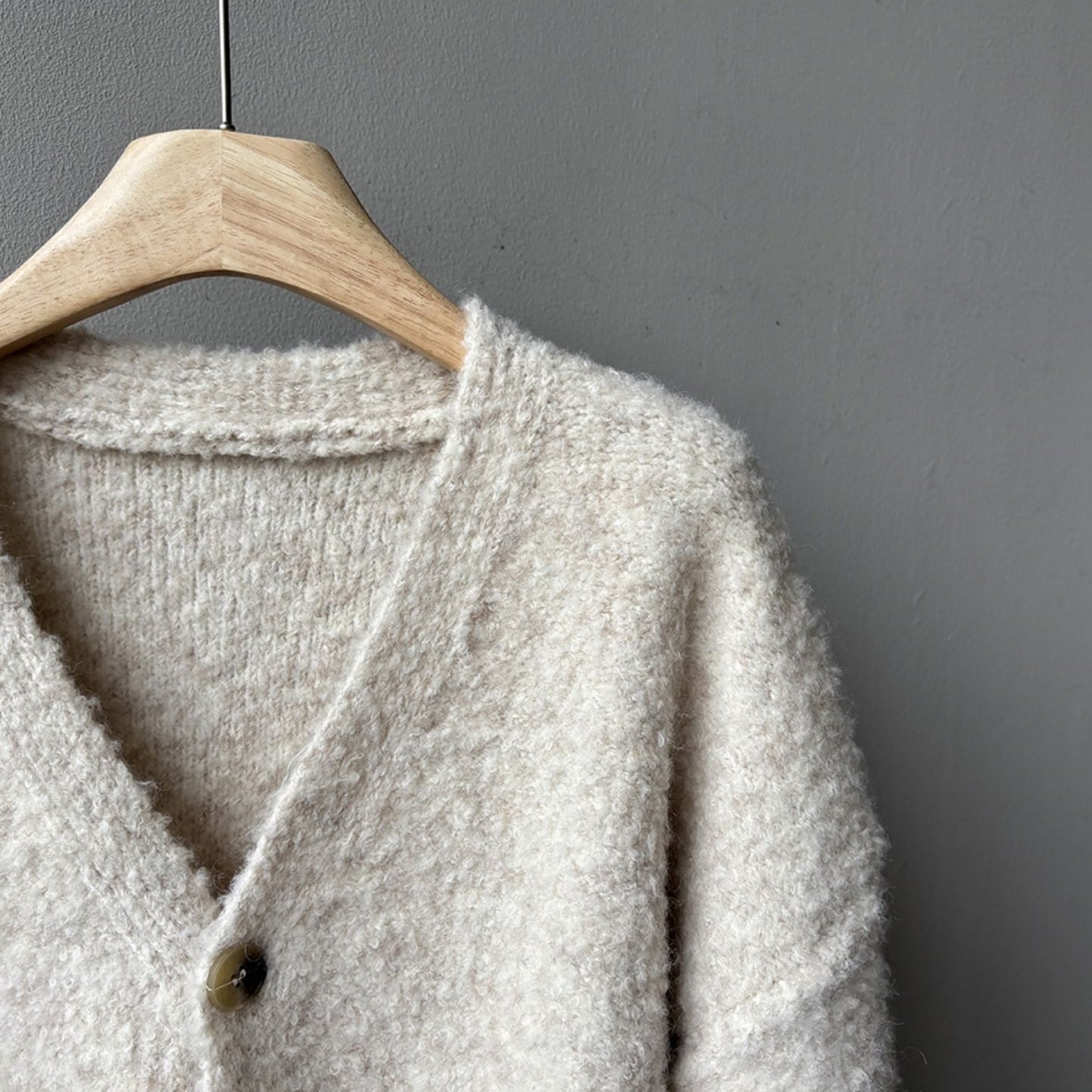 ふんわりとした風合いと、やさしいボリューム感が魅力のニットカーディガン。