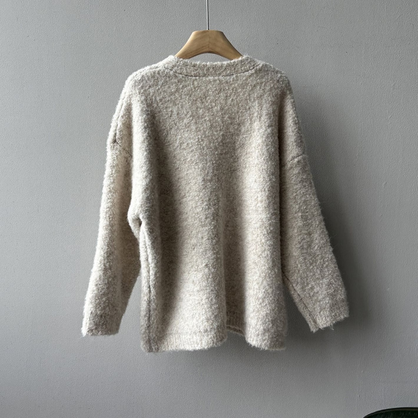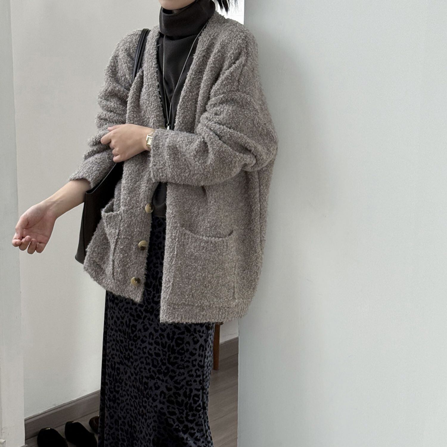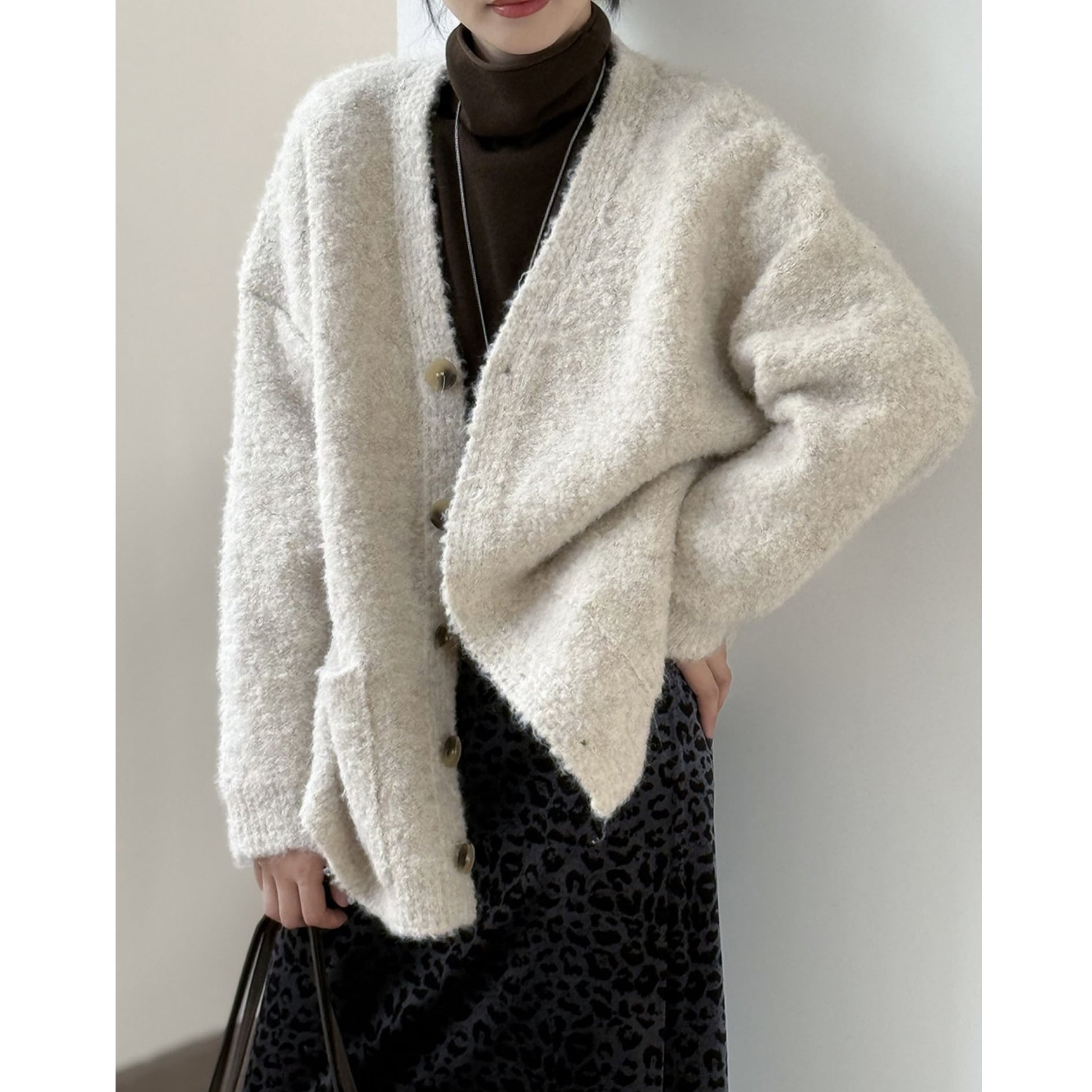 ふんわりとした風合いと、やさしいボリューム感が魅力のニットカーディガン。