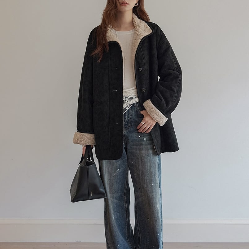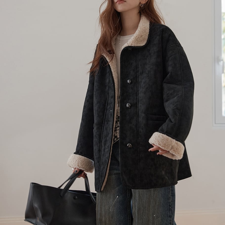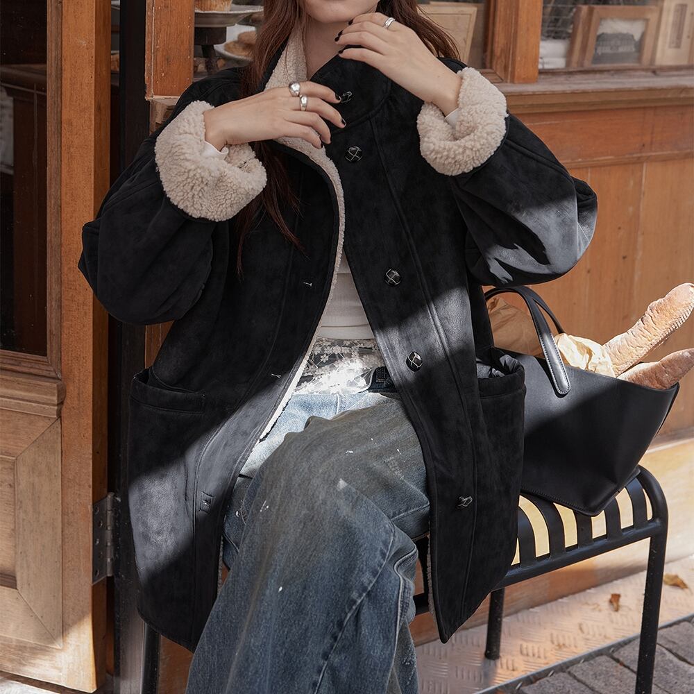 ふんわりと包み込むような温もりを感じるジャケット。 オーバーサイズシルエットで厚手のニットの上からも羽織りやすく、こなれ感のあるリラックススタイルにぴったり。 デイリーからお出かけまで幅広く活躍する、冬の主役アウターです。 【商品詳細】 サイズ: ▼Sサイズ 肩幅 55.5cm, 胸囲 116cm, 袖丈 55cm, 着丈 73cm ▼Mサイズ 肩幅 56.5cm, 胸囲 120cm, 袖丈 56cm, 着丈 75cm ▼Lサイズ 肩幅 57.5cm, 胸囲 124cm, 袖丈 57cm, 着丈 77cm (海外製品のため1~3㎝程度誤差がある場合がございます。) 素材:PU、綿、ポリエステル繊維、その他 カラー:ブラウン、ブラック ※着用モデル情報 身長・体重 168cm 50㎏ 着用サイズ L 【洗濯】 濃い色の服は、色移りを避けるため、薄い色の服と分けて洗うことを推奨します。 衣類の質感を保つため、浸け置きや洗濯機の使用は避け、手洗いまたは専門のドライクリーニングをおすすめします。 ■Evermodの人気商品一覧はこちらからご確認いただけます。 https://onlinestore.evermod.shop/categories/4311097 ■<送料無料まであと少し>の方は、プライス別にもアイテム検索できます。 https://onlinestore.evermod.shop/categories/5070150 【商品発送について】 こちらの商品は海外店舗より直接発送となる為、 ご入金から発送まで10日~3週間前後いただきます。 【注意事項】 ・タイミングによっては 商品在庫切れにより 注文キャンセルとさせていただく恐れもございますので、 予めご了承くださいませ。 ・こちらは輸入品となります。 日本製とは検品基準が異なる為、新品未使用品でも ごくわずかな汚れや傷がある場合もございます。 ・商品の色味は、お手持ちのスマートフォンの画面に よって実物と若干異なる場合がございます。 ・イメージ違いやサイズ交換等、お客さまご都合による 交換、返品は対応出来かねます。 ■(重要)ご購入前にこちら(Shop Guide)をお読みください https://onlinestore.evermod.shop/about