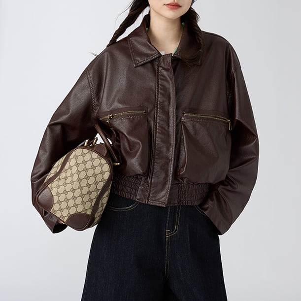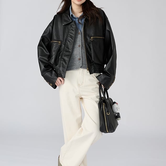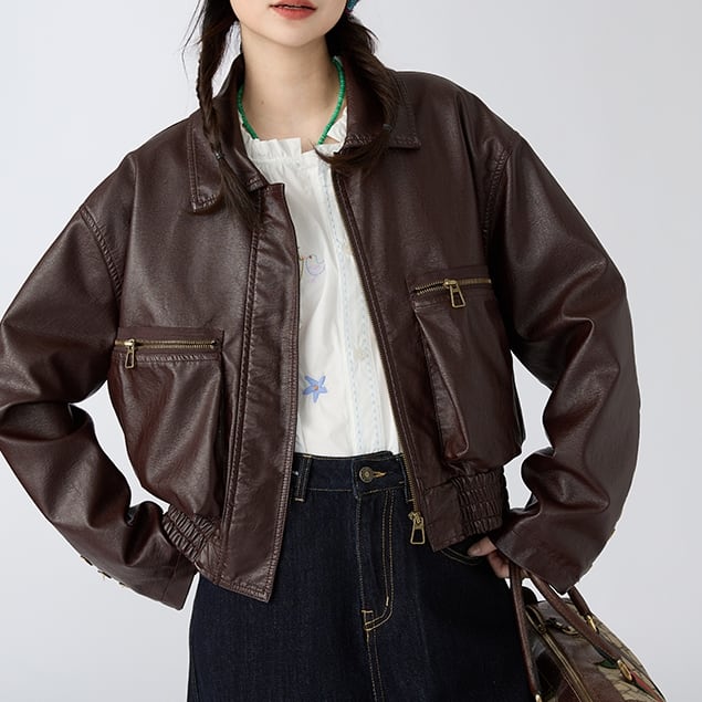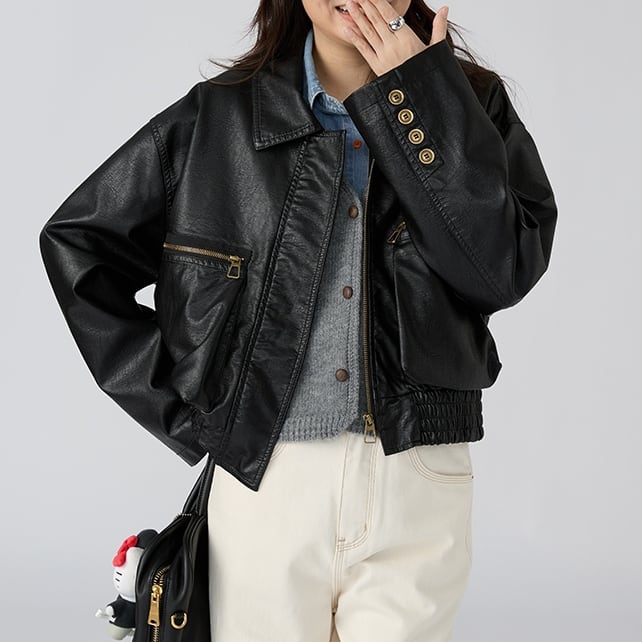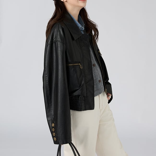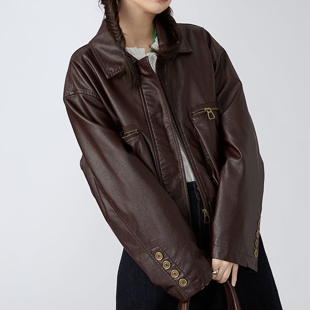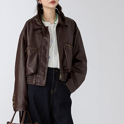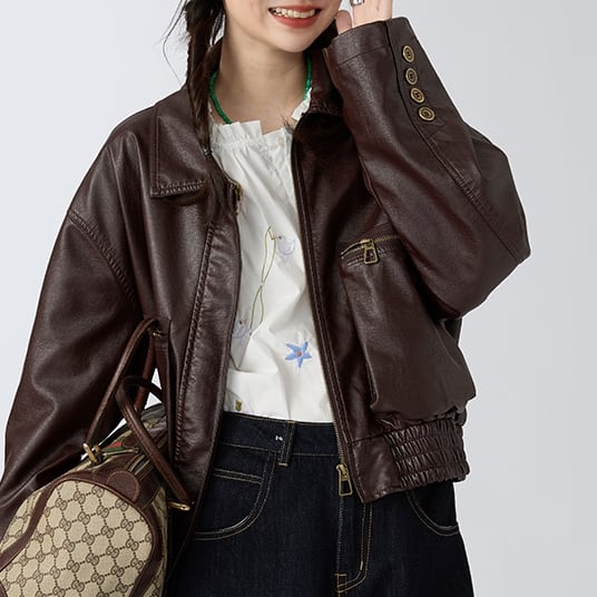 程よくゆったりとしたシルエットで、こなれ感のあるショート丈フェイクレザージャケット。 袖口のメタルボタンやフロントのジップポケットが、シンプルながらも洒落たアクセントに。 デニムやワイドパンツとも相性が良く、普段のコーデに取り入れるだけでスタイルが引き締まる一枚です。 【商品詳細】 サイズ: ▼Mサイズ 肩幅 56cm, 胸囲 132cm, 袖丈 57.5cm, 着丈 57.5cm ▼Lサイズ 肩幅 57.2cm, 胸囲 136cm, 袖丈 58.5cm, 着丈 59.5cm (海外製品のため1~3㎝程度誤差がある場合がございます。) 素材:PUレザー カラー:ブラウン、ブラック ※着用モデル情報 身長・体重 168cm 43㎏ スリーサイズ 78㎝ 64cm 88cm 着用サイズ M 【洗濯】 冷水での洗濯をおすすめします。 長時間の浸け置きは避けてください。 風通しの良い場所で吊り干しし、長時間の直射日光は避けてください。 ■Evermodの人気商品一覧はこちらからご確認いただけます。 https://onlinestore.evermod.shop/categories/4311097 ■<送料無料まであと少し>の方は、プライス別にもアイテム検索できます。 https://onlinestore.evermod.shop/categories/5070150 【商品発送について】 こちらの商品は海外店舗より直接発送となる為、 ご入金から発送まで10日~3週間前後いただきます。 【注意事項】 ・タイミングによっては 商品在庫切れにより 注文キャンセルとさせていただく恐れもございますので、 予めご了承くださいませ。 ・こちらは輸入品となります。 日本製とは検品基準が異なる為、新品未使用品でも ごくわずかな汚れや傷がある場合もございます。 ・商品の色味は、お手持ちのスマートフォンの画面に よって実物と若干異なる場合がございます。 ・イメージ違いやサイズ交換等、お客さまご都合による 交換、返品は対応出来かねます。 ■(重要)ご購入前にこちら(Shop Guide)をお読みください https://onlinestore.evermod.shop/about