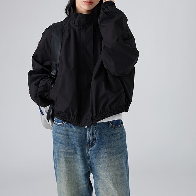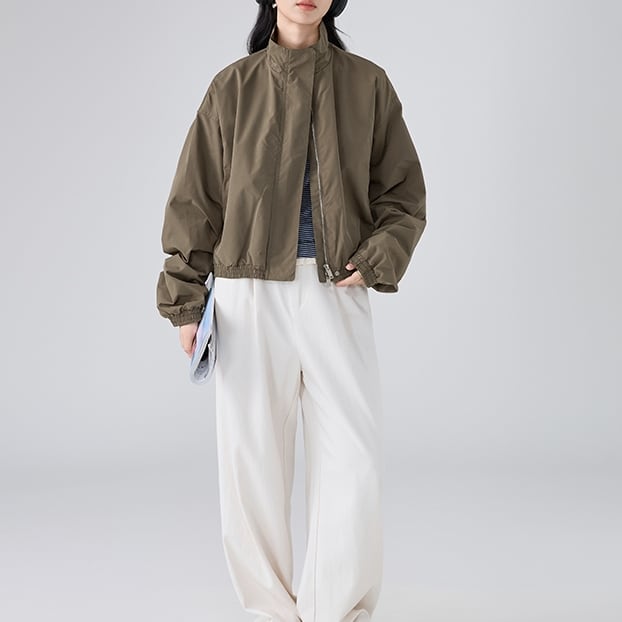 軽やかな質感とゆるさのあるシルエットが魅力のショートブルゾン。 前立ては比翼デザインでミニマルに仕上げ、カジュアルにもきれいめにも合わせやすい一枚。 季節の変わり目にさっと羽織れる、万能アウターです。 【商品詳細】 サイズ: ▼Mサイズ 着丈52cm, 胸囲134cm, 肩幅59cm, 袖丈59cm ▼Lサイズ 着丈53cm, 胸囲138cm, 肩幅60cm, 袖丈60cm (海外製品のため1~3㎝程度誤差がある場合がございます。) 素材:ポリエステル カラー:ブラック オリーブ ※着用モデル情報 身長・体重 164cm 46㎏ スリーサイズ 76㎝ 60cm 86cm 着用サイズ M 【洗濯】 冷水で洗ってください。 長時間浸さないでください。 風通しの良い場所で吊るして乾かし、長時間直射日光に当てないでください。 ■Evermodの人気商品一覧はこちらからご確認いただけます。 https://onlinestore.evermod.shop/categories/4311097 ■<送料無料まであと少し>の方は、プライス別にもアイテム検索できます。 https://onlinestore.evermod.shop/categories/5070150 【商品発送について】 こちらの商品は海外店舗より直接発送となる為、 ご入金から発送まで10日~3週間前後いただきます。 【注意事項】 ・タイミングによっては 商品在庫切れにより 注文キャンセルとさせていただく恐れもございますので、 予めご了承くださいませ。 ・こちらは輸入品となります。 日本製とは検品基準が異なる為、新品未使用品でも ごくわずかな汚れや傷がある場合もございます。 ・商品の色味は、お手持ちのスマートフォンの画面に よって実物と若干異なる場合がございます。 ・イメージ違いやサイズ交換等、お客さまご都合による 交換、返品は対応出来かねます。 ■(重要)ご購入前にこちら(Shop Guide)をお読みください https://onlinestore.evermod.shop/about