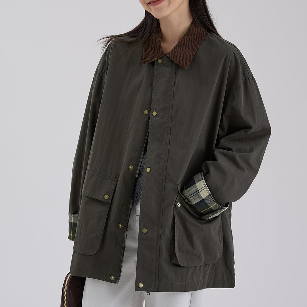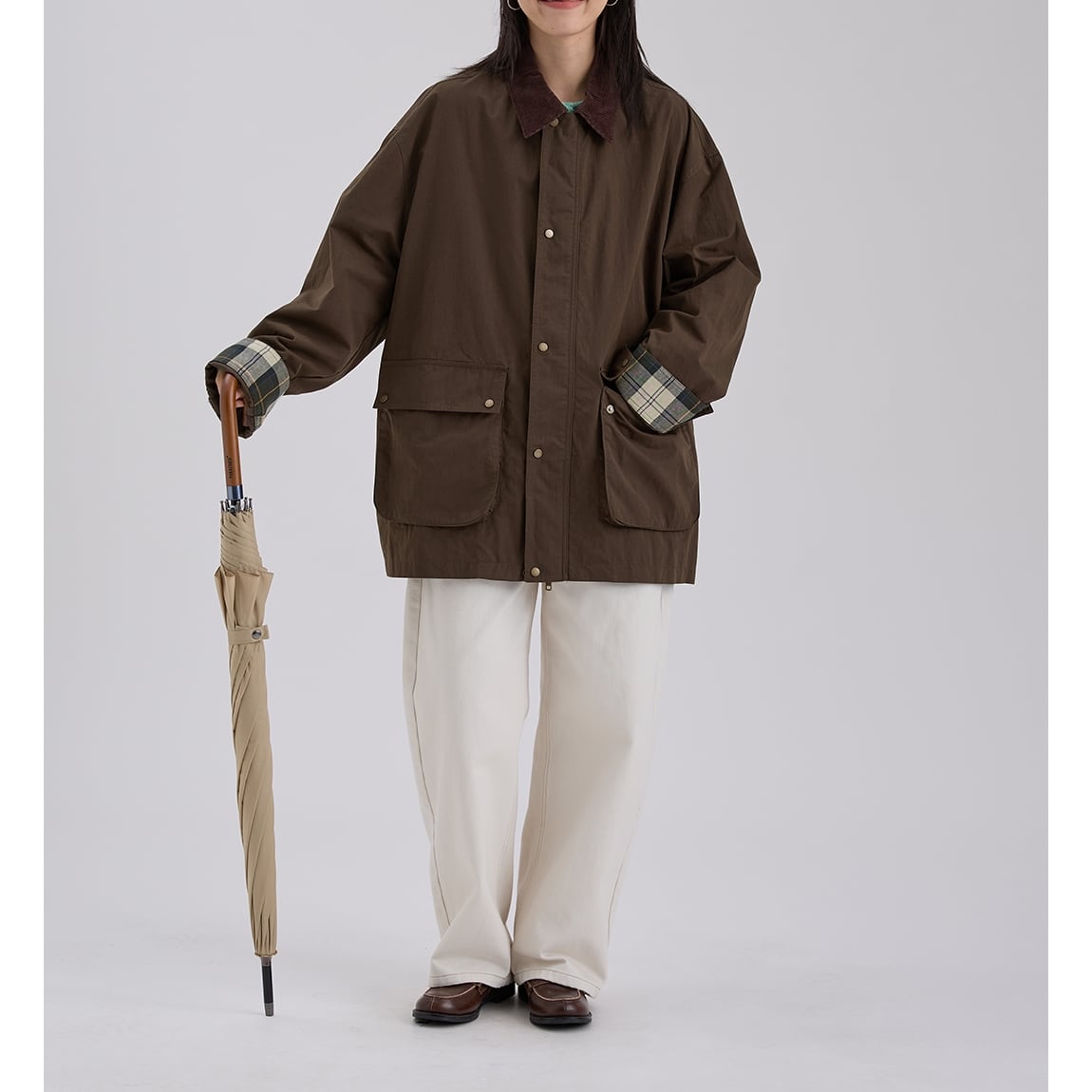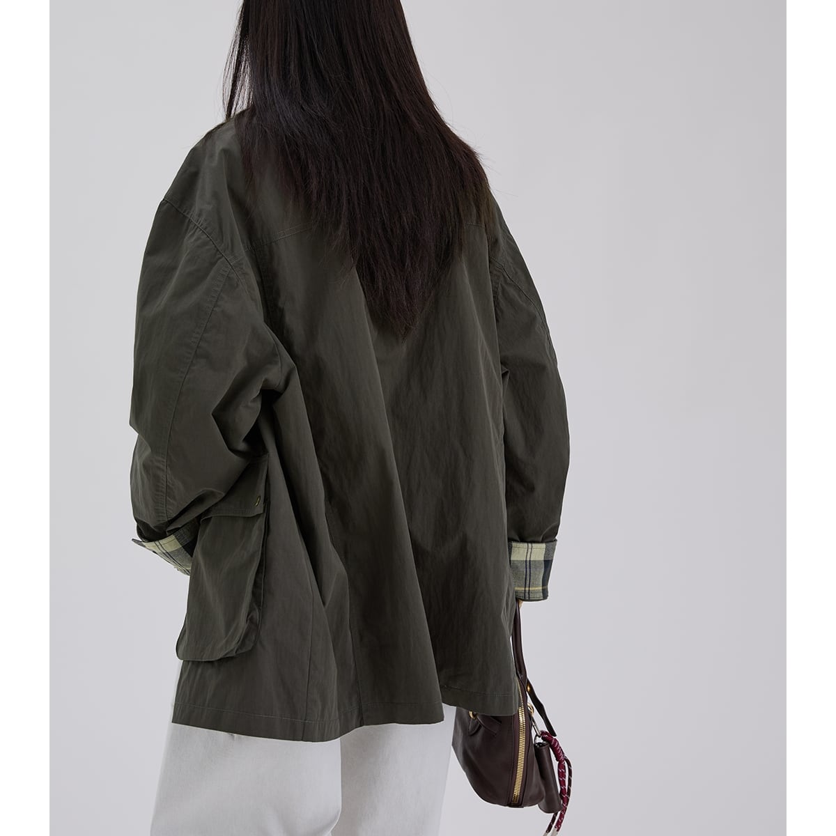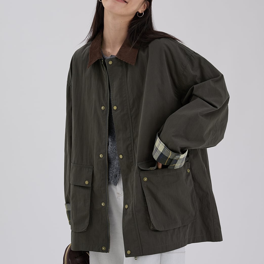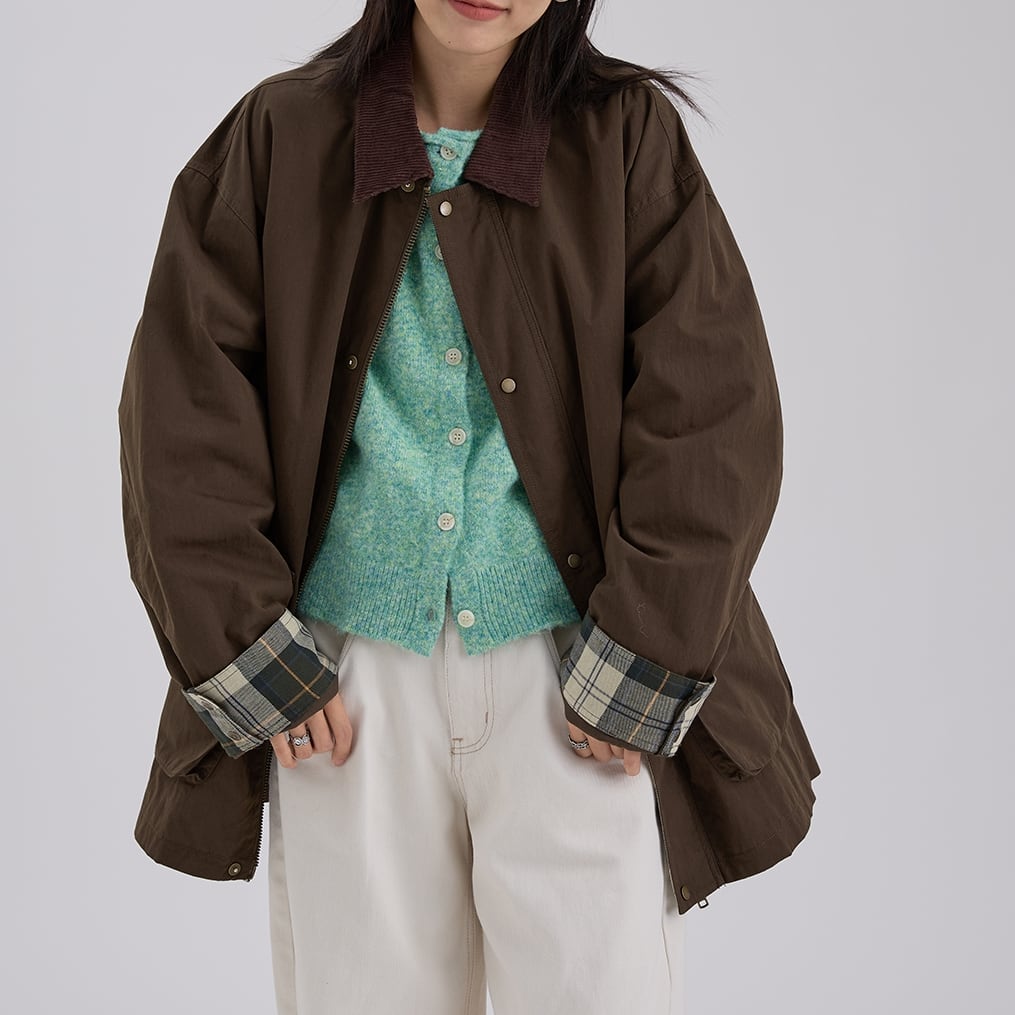 コーデュロイ素材の襟がアクセントになった、ゆったりシルエットのワークジャケット。 味のある風合いの生地と、袖裏のチェック柄がさりげなく個性をプラスします。 カジュアルにもナチュラルにも馴染む、ロングシーズン楽しめる一枚です。 【商品詳細】 サイズ: ▼Sサイズ 着丈80cm, 胸囲136cm, 肩幅59cm, 袖丈60cm ▼Mサイズ 着丈81cm, 胸囲140cm, 肩幅60cm, 袖丈61cm ▼Lサイズ 着丈82cm, 胸囲144cm, 肩幅61cm, 袖丈62cm (海外製品のため1~3㎝程度誤差がある場合がございます。) 素材:綿、ナイロン カラー:カーキ、ブラウン ※着用モデル情報 身長・体重 166cm 46㎏ スリーサイズ 76㎝ 60cm 86cm 着用サイズ S 【洗濯】 冷水で洗ってください。 長時間浸さないでください。 風通しの良い場所で吊るして乾かし、長時間直射日光に当てないでください。 ■Evermodの人気商品一覧はこちらからご確認いただけます。 https://onlinestore.evermod.shop/categories/4311097 ■<送料無料まであと少し>の方は、プライス別にもアイテム検索できます。 https://onlinestore.evermod.shop/categories/5070150 【商品発送について】 こちらの商品は海外店舗より直接発送となる為、 ご入金から発送まで10日~3週間前後いただきます。 【注意事項】 ・タイミングによっては 商品在庫切れにより 注文キャンセルとさせていただく恐れもございますので、 予めご了承くださいませ。 ・こちらは輸入品となります。 日本製とは検品基準が異なる為、新品未使用品でも ごくわずかな汚れや傷がある場合もございます。 ・商品の色味は、お手持ちのスマートフォンの画面に よって実物と若干異なる場合がございます。 ・イメージ違いやサイズ交換等、お客さまご都合による 交換、返品は対応出来かねます。 ■(重要)ご購入前にこちら(Shop Guide)をお読みください https://onlinestore.evermod.shop/about