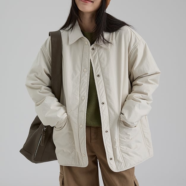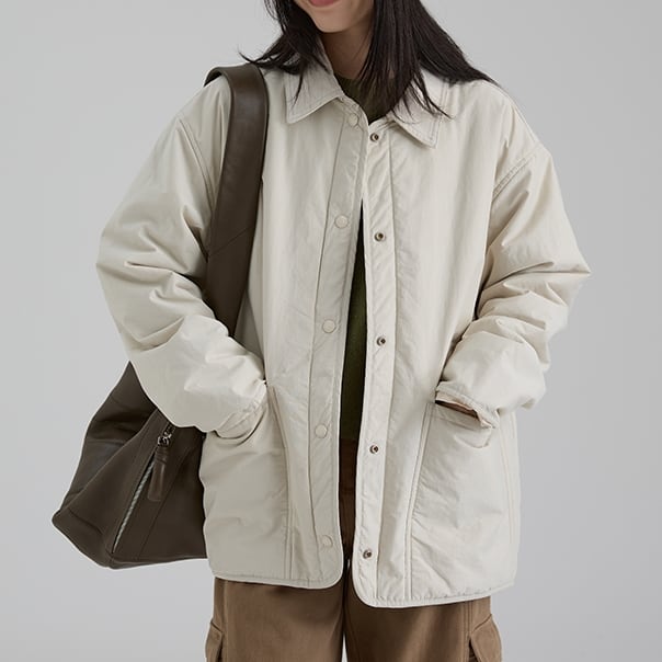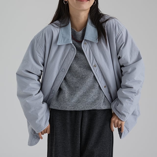 ゆったりとしたワイドシルエットが魅力のユーティリティジャケット。 大きめポケットや比翼スナップ仕様など、ミニマルながら使いやすさを兼ね備えたデザイン。 カジュアルにもきれいめにも合わせやすく、デイリーに活躍する一枚です。 【商品詳細】 サイズ: ▼Mサイズ 着丈70.5cm, 胸囲128cm, 肩幅53.8cm, 袖丈55.8cm ▼Lサイズ 着丈72cm, 胸囲132cm, 肩幅55cm, 袖丈57cm (海外製品のため1~3㎝程度誤差がある場合がございます。) 素材:綿、ナイロン(表地)綿、レーヨン(裏地)ウール、綿(中綿) カラー:グレー、クリーム、ライトブルー ※着用モデル情報 身長・体重 166cm 46㎏ スリーサイズ 76㎝ 60cm 86cm 着用サイズ M 【洗濯】 冷水で洗ってください。 長時間浸さないでください。 風通しの良い場所で吊るして乾かし、長時間直射日光に当てないでください。 ■Evermodの人気商品一覧はこちらからご確認いただけます。 https://onlinestore.evermod.shop/categories/4311097 ■<送料無料まであと少し>の方は、プライス別にもアイテム検索できます。 https://onlinestore.evermod.shop/categories/5070150 【商品発送について】 こちらの商品は海外店舗より直接発送となる為、 ご入金から発送まで10日~3週間前後いただきます。 【注意事項】 ・タイミングによっては 商品在庫切れにより 注文キャンセルとさせていただく恐れもございますので、 予めご了承くださいませ。 ・こちらは輸入品となります。 日本製とは検品基準が異なる為、新品未使用品でも ごくわずかな汚れや傷がある場合もございます。 ・商品の色味は、お手持ちのスマートフォンの画面に よって実物と若干異なる場合がございます。 ・イメージ違いやサイズ交換等、お客さまご都合による 交換、返品は対応出来かねます。 ■(重要)ご購入前にこちら(Shop Guide)をお読みください https://onlinestore.evermod.shop/about