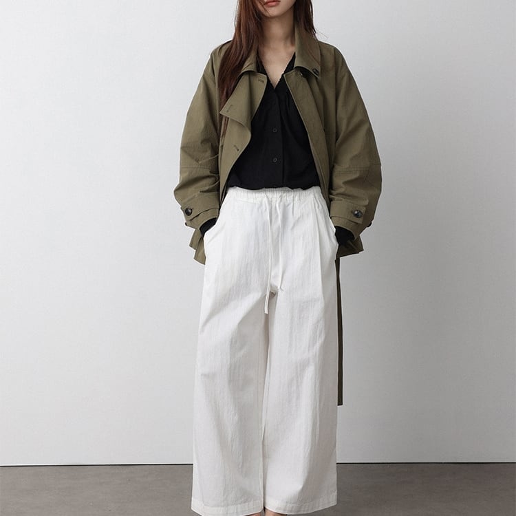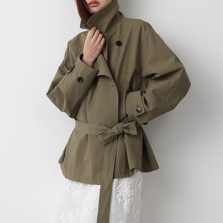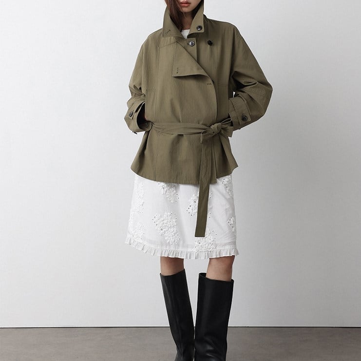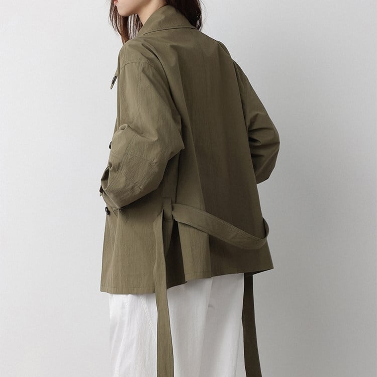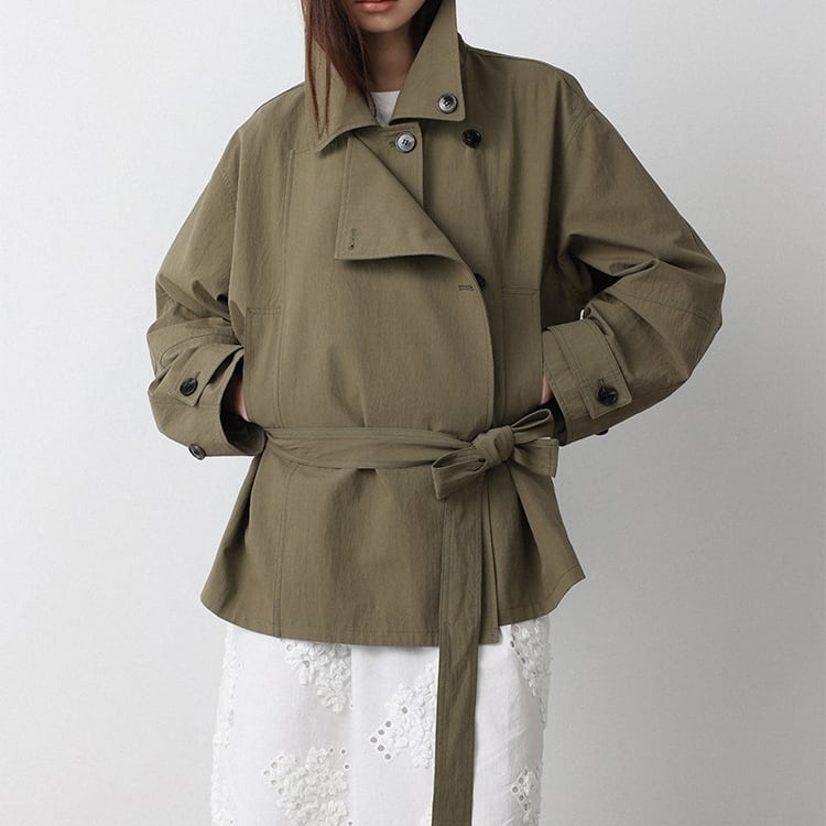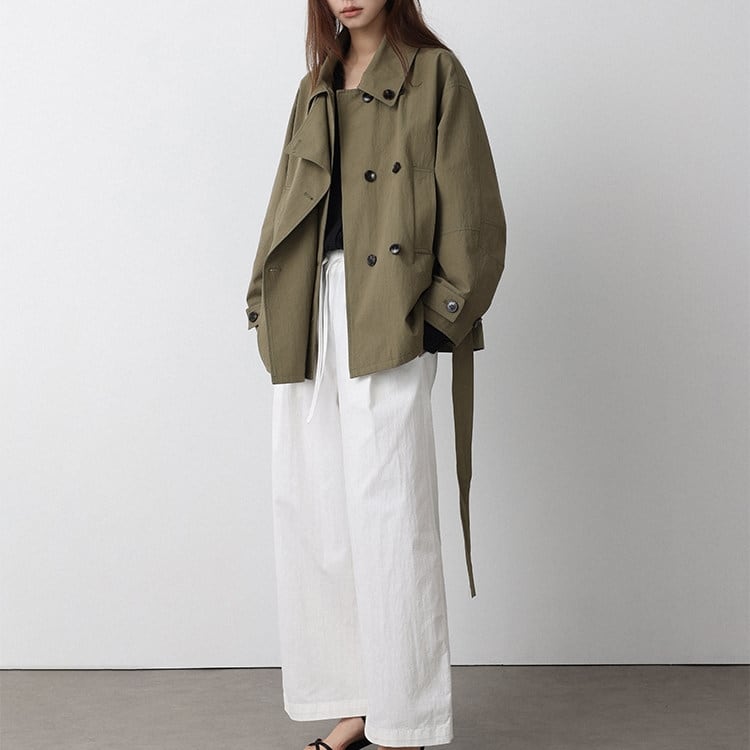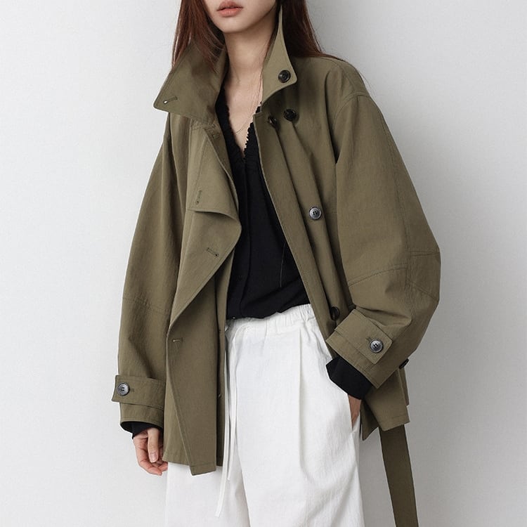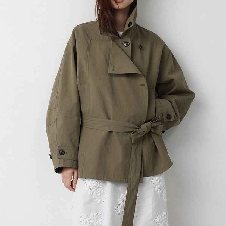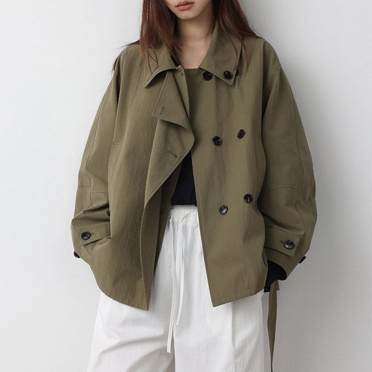 ゆとりのあるシルエットが魅力のショート丈トレンチコート。