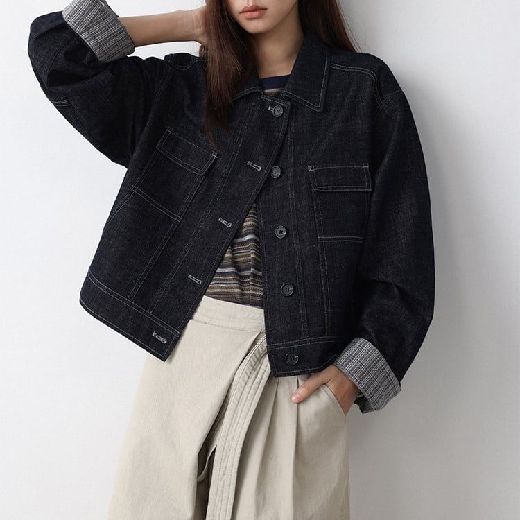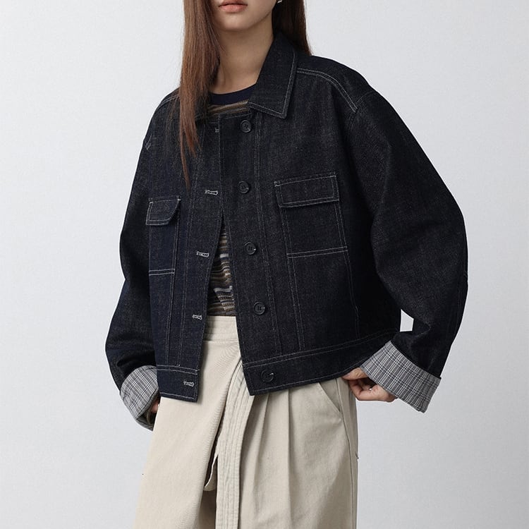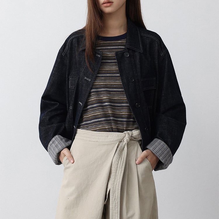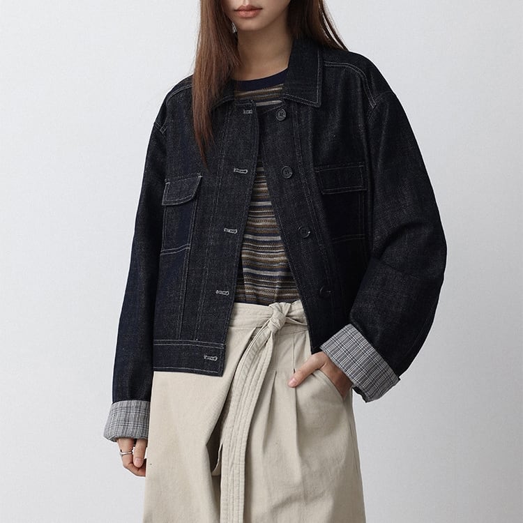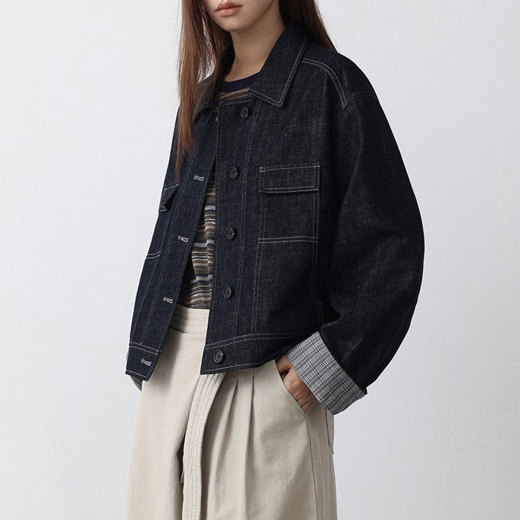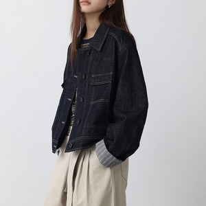 ゆとりのあるフォルムが魅力のショート丈デニムジャケット。