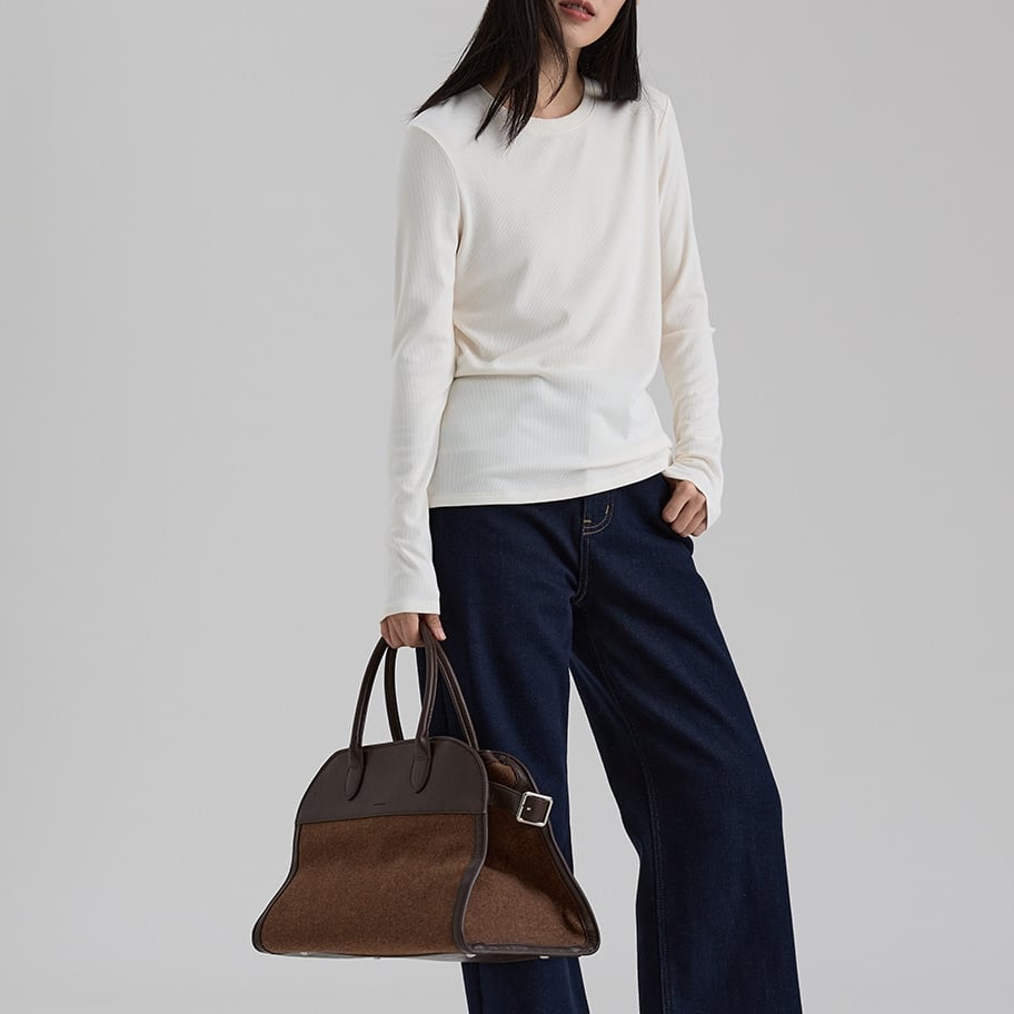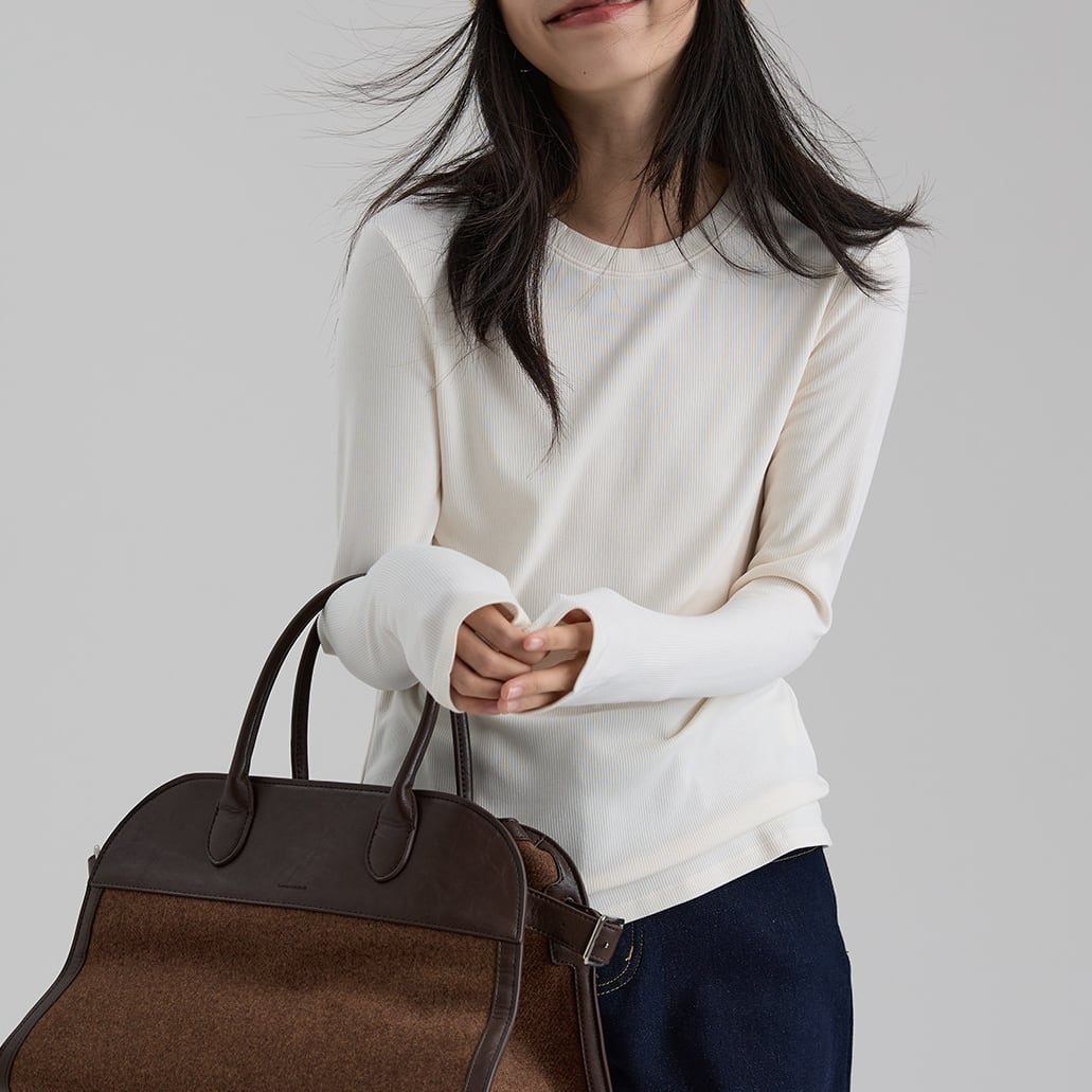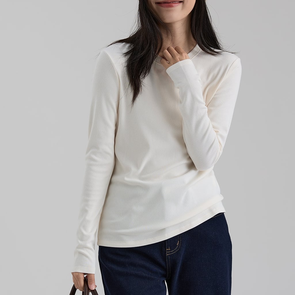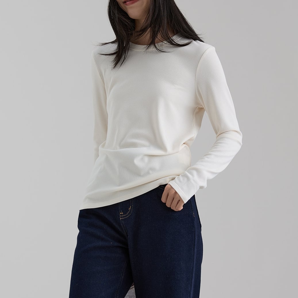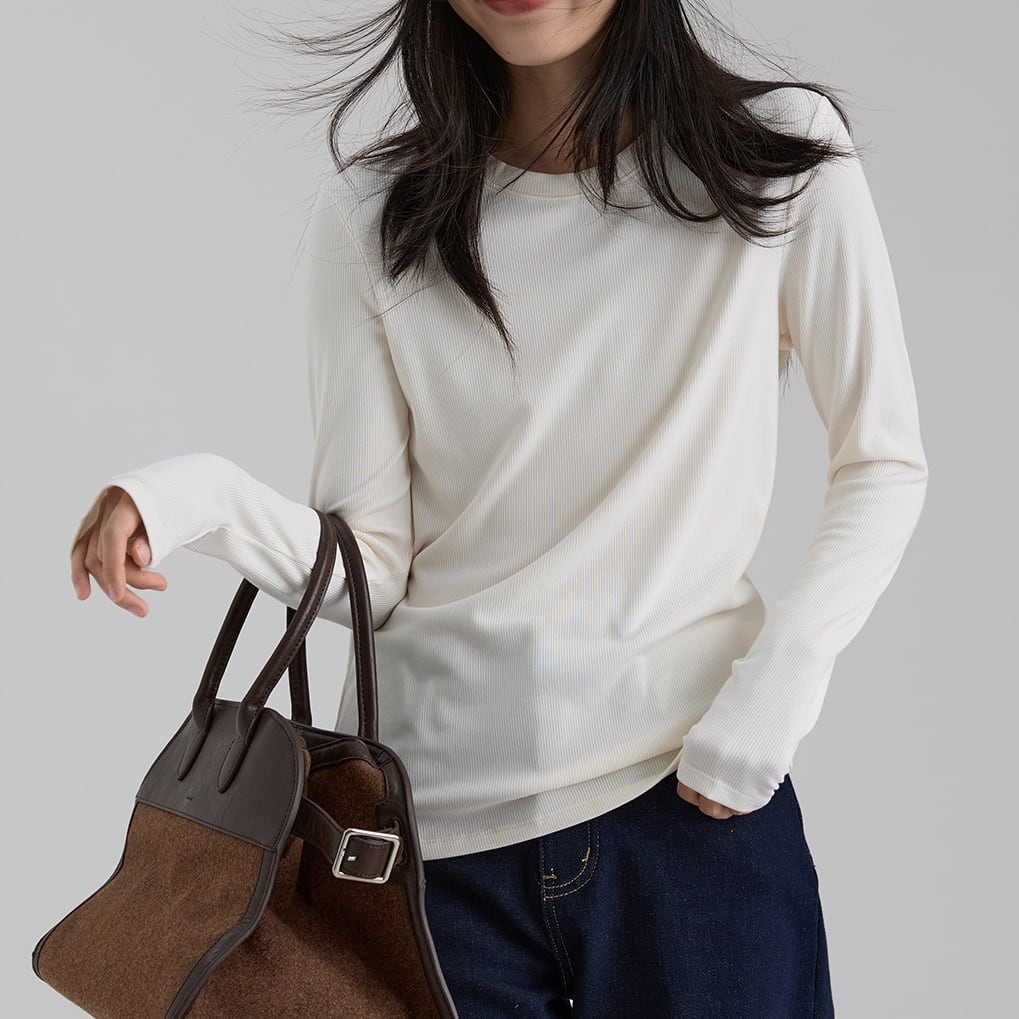 一枚でもインナーとしても使いやすく、幅広いコーディネートに活躍するベーシックトップスです。