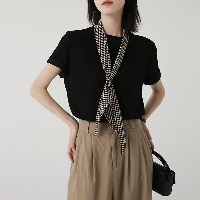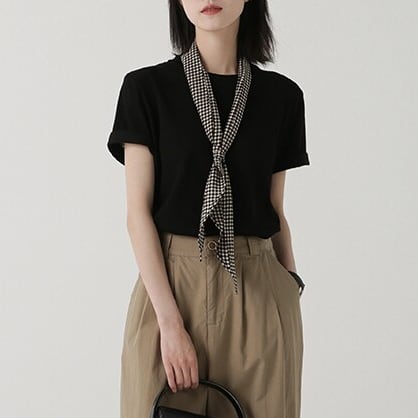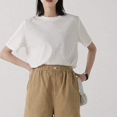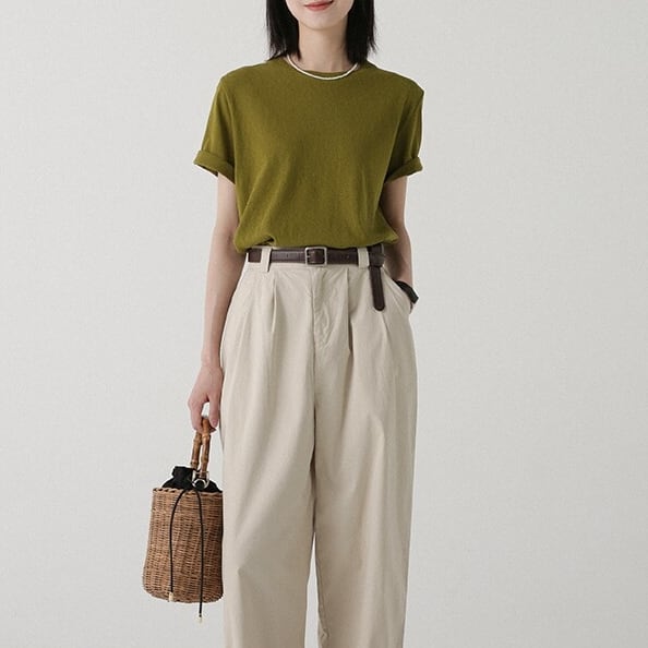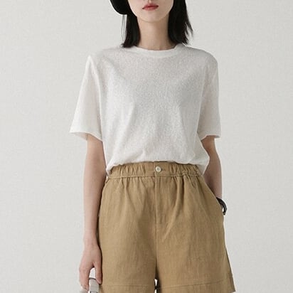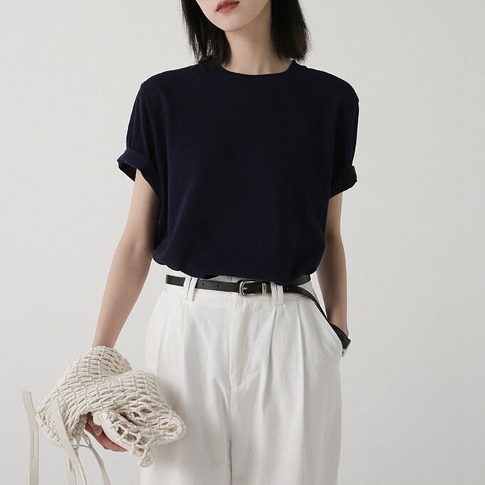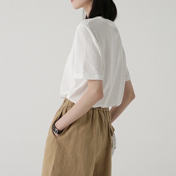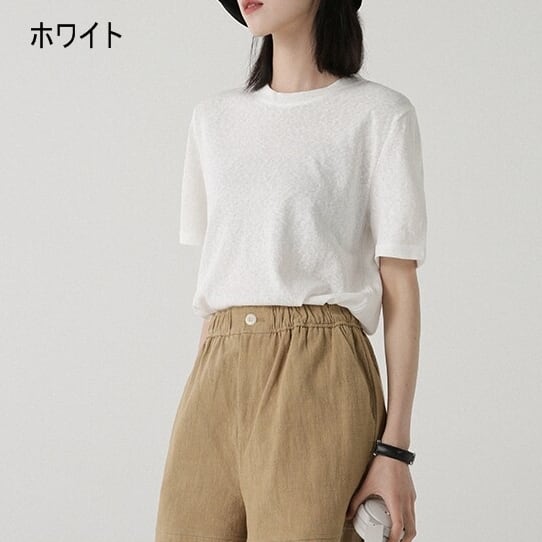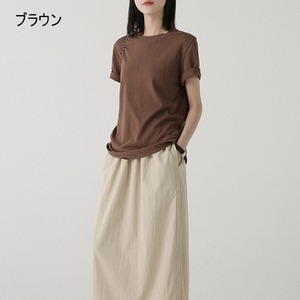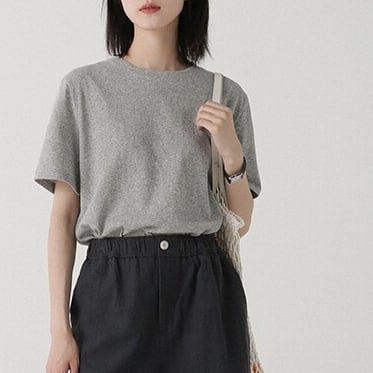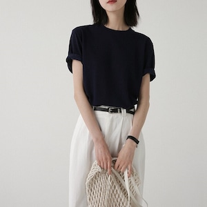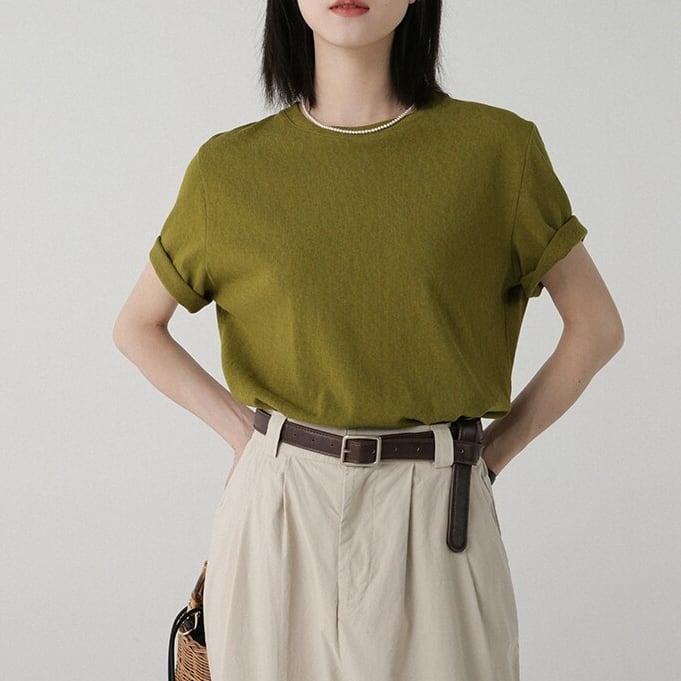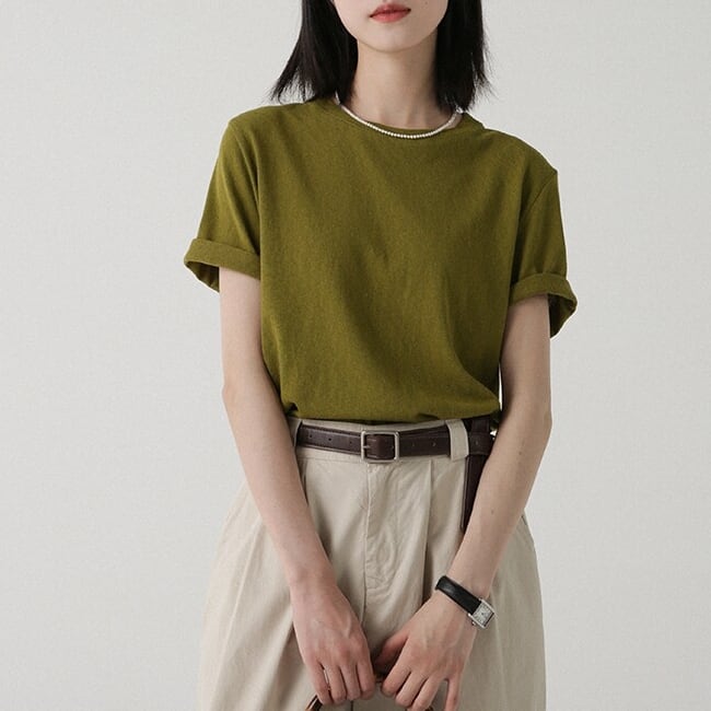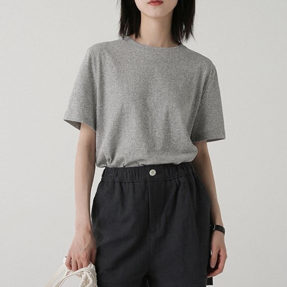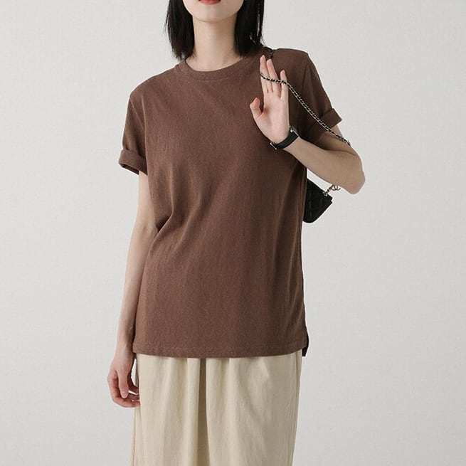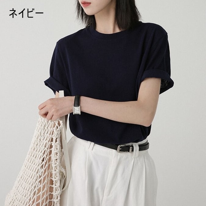 すっきりとしたクルーネックデザインのシンプルな半袖カットソー。