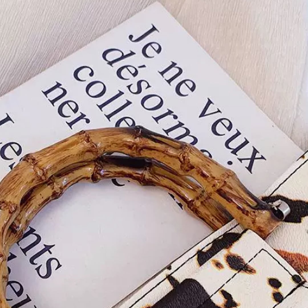 ウッドハンドルカウプリントトートバッグ /2205-22