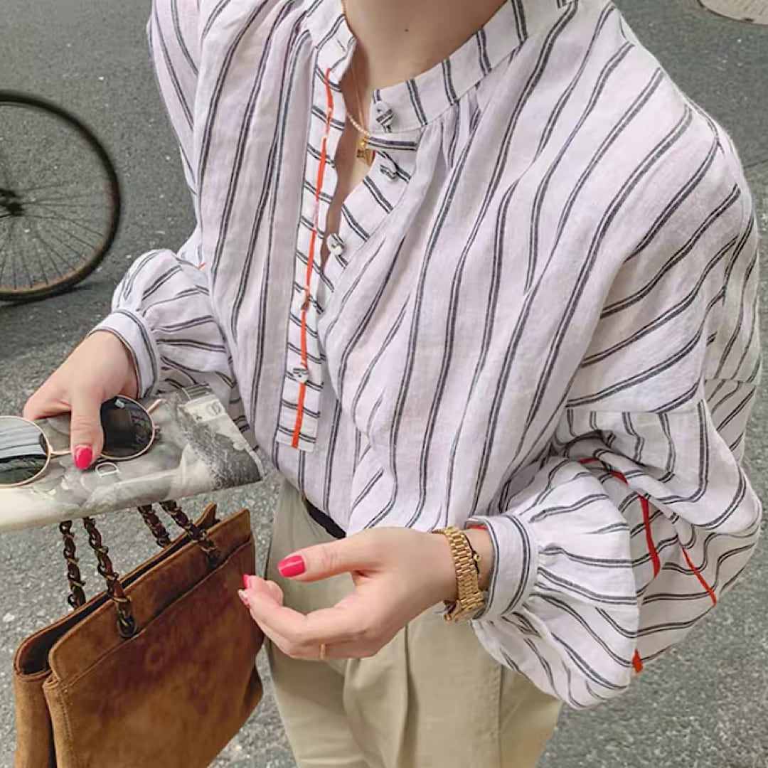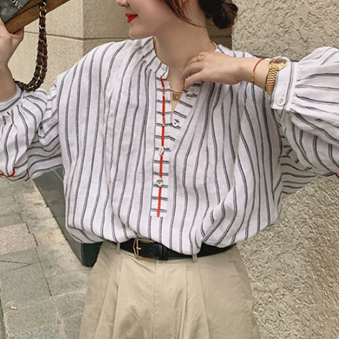 ランタンスリーブルーズストライプシャツ /JN003CF