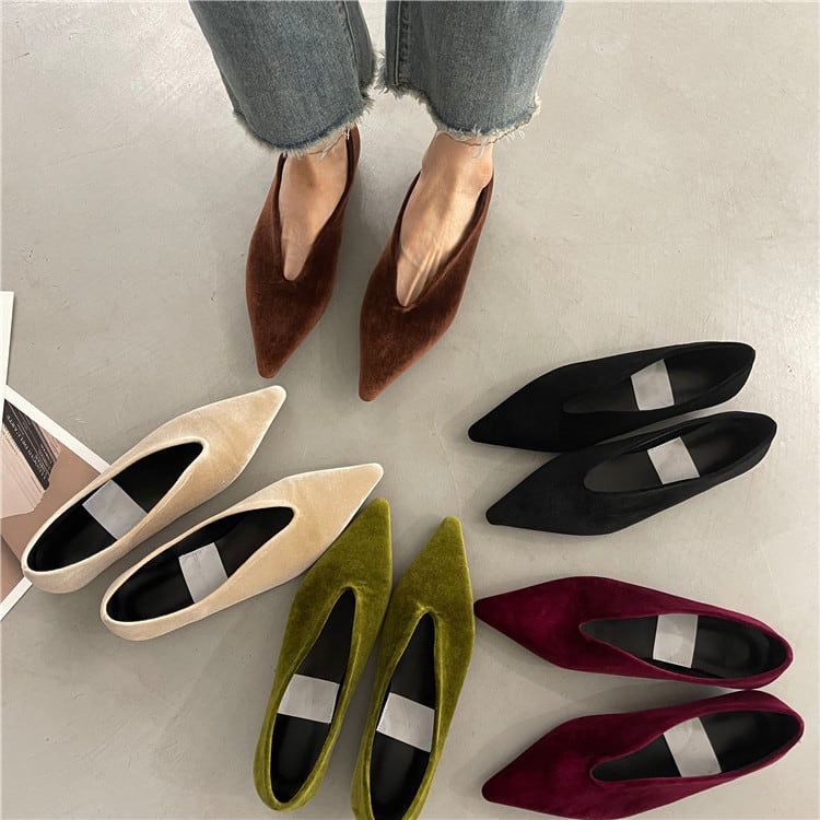 【即納】(パープルレッド 38のみ)ポインテッドトゥフラットパンプス /YM0084