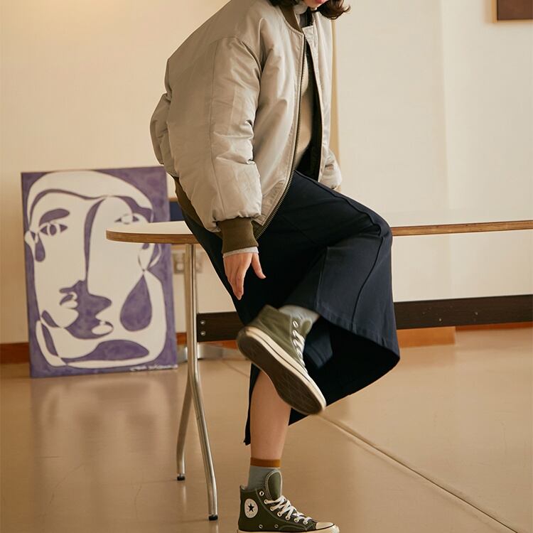 ドローストリングバックスリットカジュアルロングスカート /YM0193
