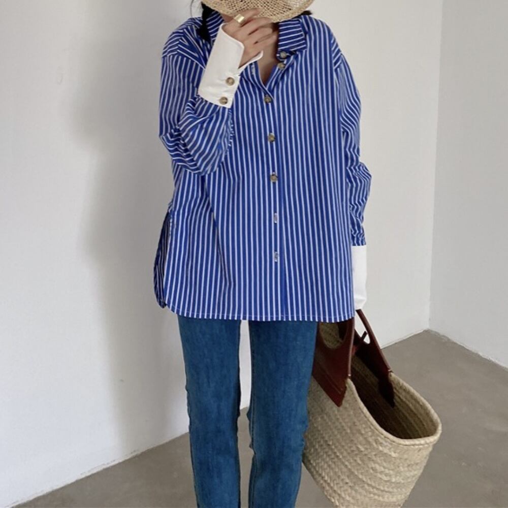 ストライプデザインで無地系のボトムスと相性good!