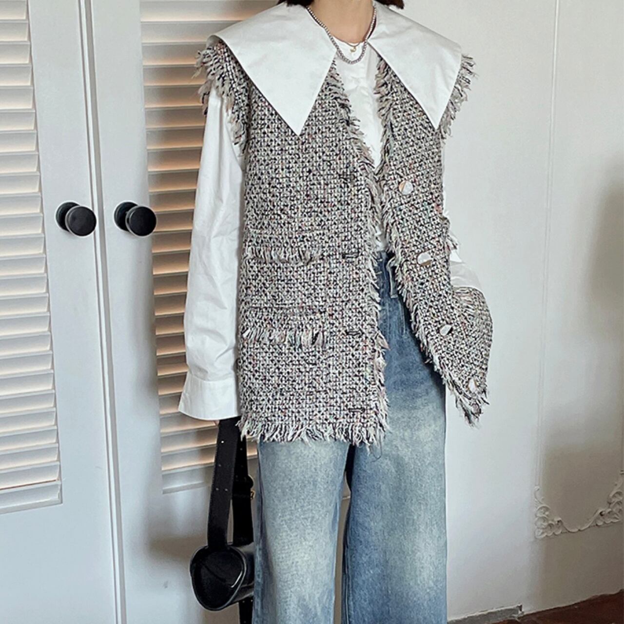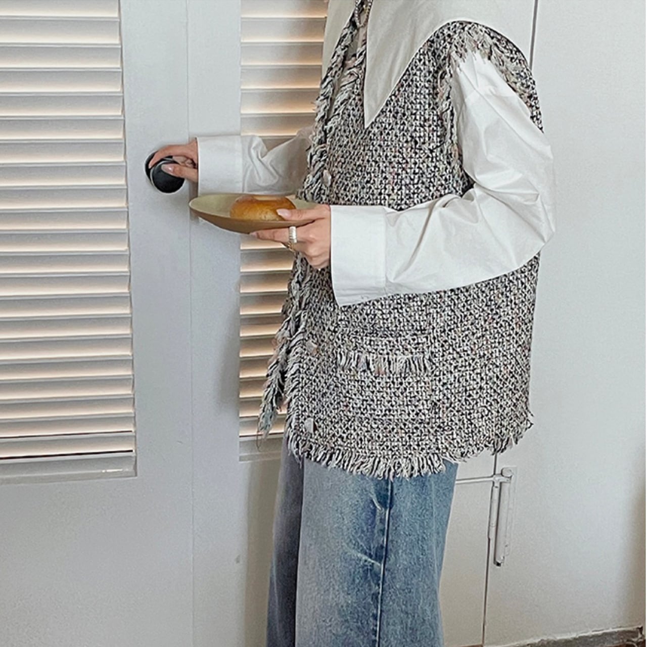 ワンピースやカーディガンなどレイヤードコーデにも使える万能アイテム