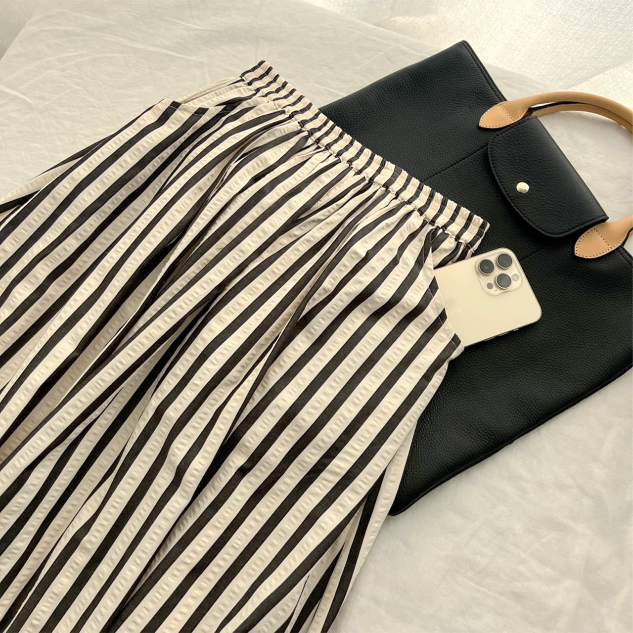 ハリのある生地にストライプ柄をオンしたフレアスカート 程よいボリューム感がカジュアルに着られる使いやすいシルエット ウエストはゴム仕様で履きやすく、アクティブに動きやすいのが嬉しいポイント◎ 【商品詳細】 サイズ:S,M,L,XL ▼Sサイズ ウエスト60cm, スカート丈78cm ▼Mサイズ ウエスト64cm, スカート丈73cm ▼Lサイズ ウエスト68cm, スカート丈75cm ▼XLサイズ ウエスト72cm, スカート丈77cm (海外製品のため1〜3㎝程度誤差がある場合がございます。) カラー:ホワイト×ブッラク 素材:ポリエステル ■Evermodの人気商品一覧はこちらからご確認いただけます。 https://onlinestore.evermod.shop/categories/4311097 ■<送料無料まであと少し>の方は、プライス別にもアイテム検索できます。 https://onlinestore.evermod.shop/categories/5070150 【商品発送について】 こちらの商品は海外店舗より直接発送となる為、 ご入金から発送まで10日〜3週間前後いただきます。 【注意事項】 ・タイミングによっては 商品在庫切れにより 注文キャンセルとさせていただく恐れもございますので、 予めご了承くださいませ。 ・こちらは輸入品となります。 日本製とは検品基準が異なる為、新品未使用品でも ごくわずかな汚れや傷がある場合もございます。 ・商品の色味は、お手持ちのスマートフォンの画面に よって実物と若干異なる場合がございます。 ・イメージ違いやサイズ交換等、お客さまご都合による 交換、返品は対応出来かねます。 ■(重要)ご購入前にこちら(Shop Guide)をお読みください https://onlinestore.evermod.shop/about