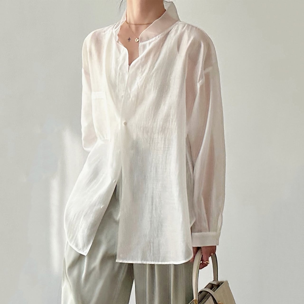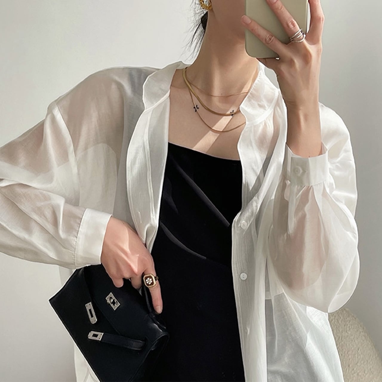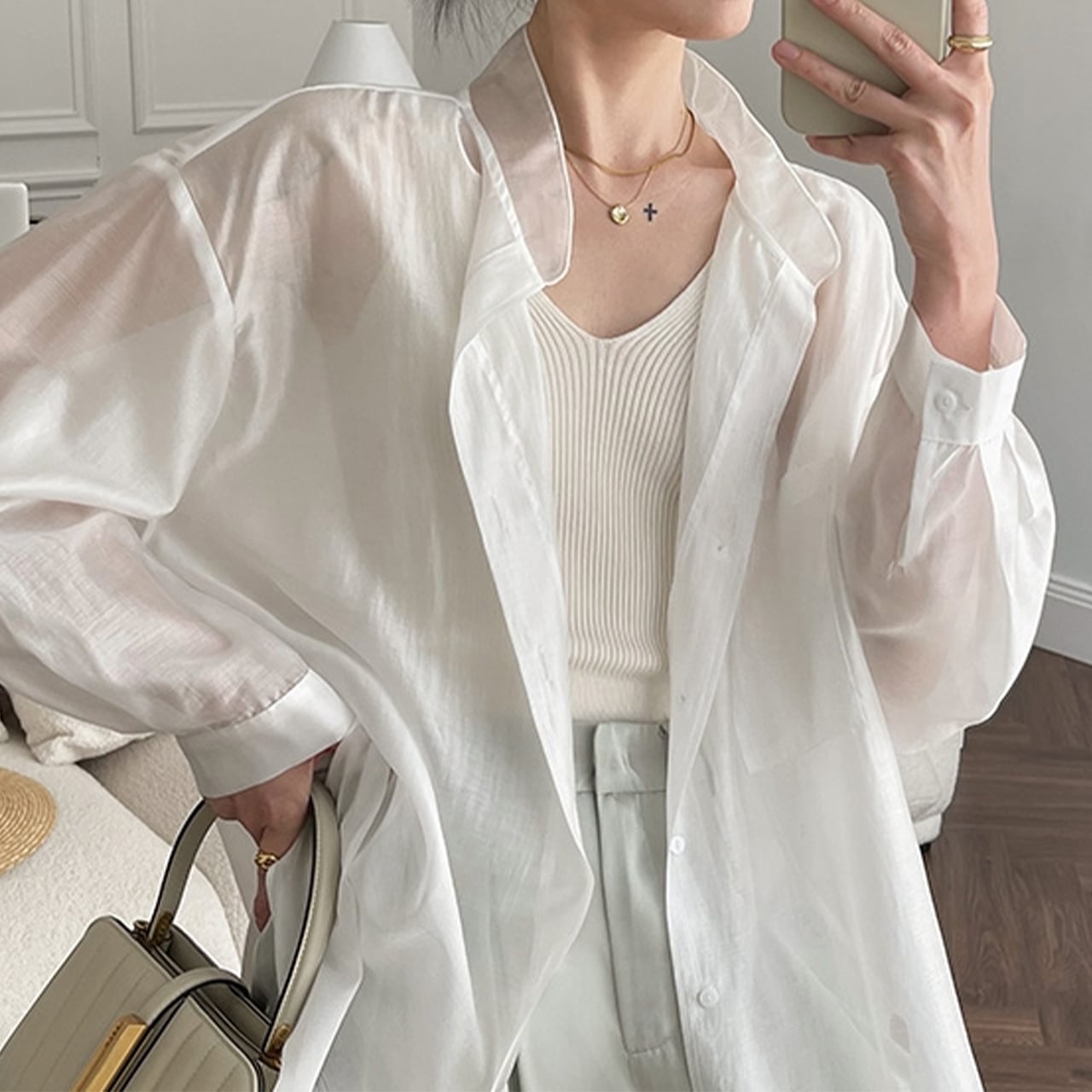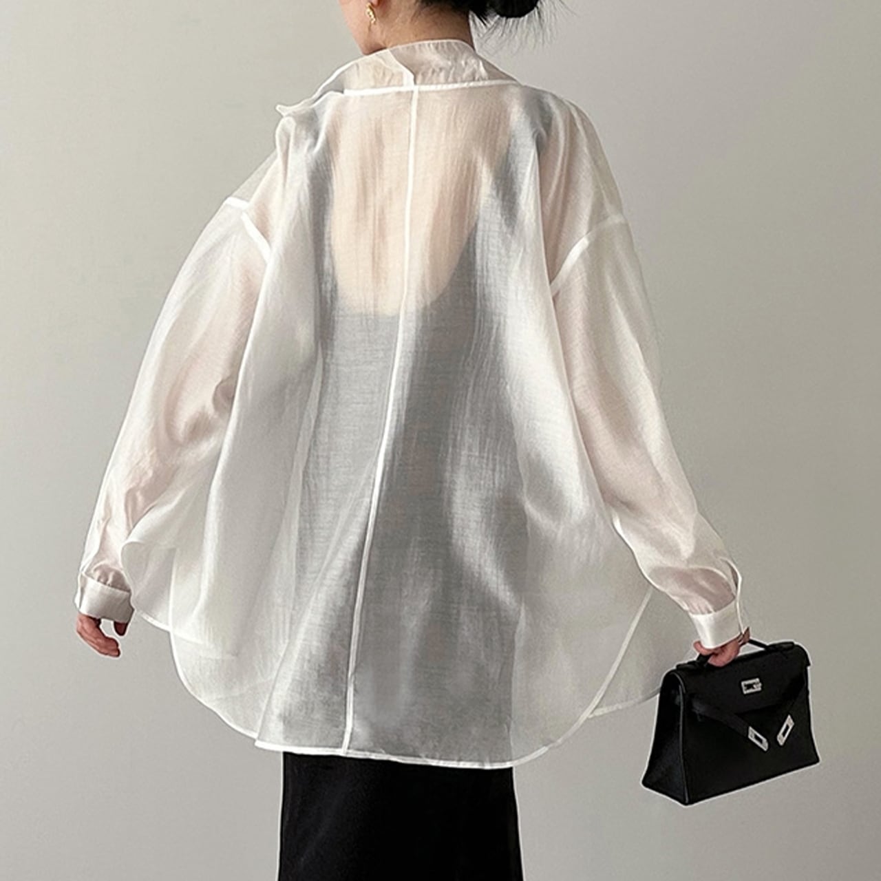シアーな透け感が涼し気な長袖シャツ タンクトップやキャミソールなど肌の露出が気になる際の羽織としてもGood UVケアや冷房対策にもおすすめ◎ 【商品詳細】 サイズ:S,M,L,XL ▼Sサイズ 胸囲122cm, 袖丈49cm, 着丈前69cm, 着丈後ろ77cm ▼Mサイズ 胸囲126cm, 袖丈50cm, 着丈前70cm, 着丈後ろ78cm ▼Lサイズ 胸囲130cm, 袖丈51cm, 着丈前71cm, 着丈後ろ79cm ▼XLサイズ 胸囲134cm, 袖丈52cm, 着丈前72cm, 着丈後ろ80cm (海外製品のため1〜3㎝程度誤差がある場合がございます。) カラー:ホワイト、ライトブルー ■Evermodの人気商品一覧はこちらからご確認いただけます。 https://onlinestore.evermod.shop/categories/4311097 ■<送料無料まであと少し>の方は、プライス別にもアイテム検索できます。 https://onlinestore.evermod.shop/categories/5070150 【商品発送について】 こちらの商品は海外店舗より直接発送となる為、 ご入金から発送まで10日〜3週間前後いただきます。 【注意事項】 ・タイミングによっては 商品在庫切れにより 注文キャンセルとさせていただく恐れもございますので、 予めご了承くださいませ。 ・こちらは輸入品となります。 日本製とは検品基準が異なる為、新品未使用品でも ごくわずかな汚れや傷がある場合もございます。 ・商品の色味は、お手持ちのスマートフォンの画面に よって実物と若干異なる場合がございます。 ・イメージ違いやサイズ交換等、お客さまご都合による 交換、返品は対応出来かねます。 ■(重要)ご購入前にこちら(Shop Guide)をお読みください https://onlinestore.evermod.shop/about