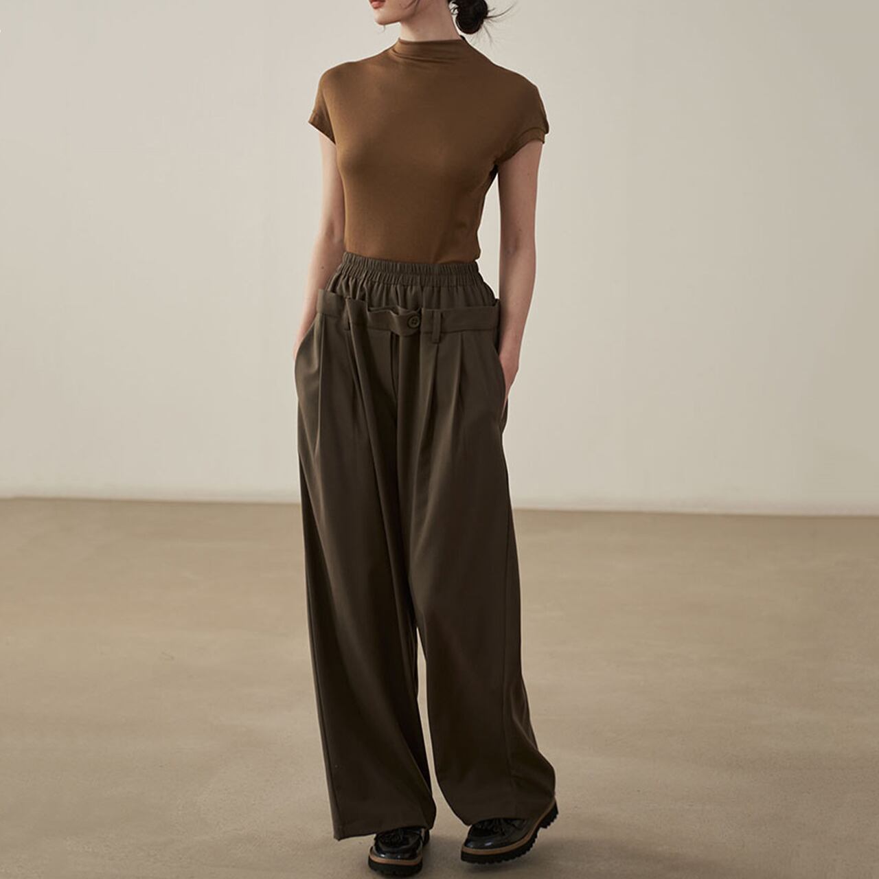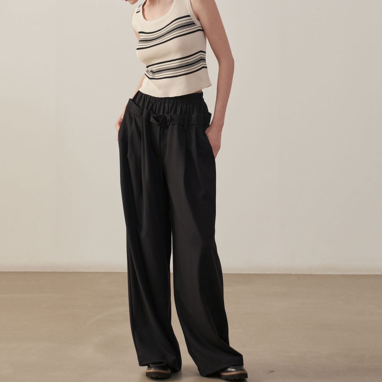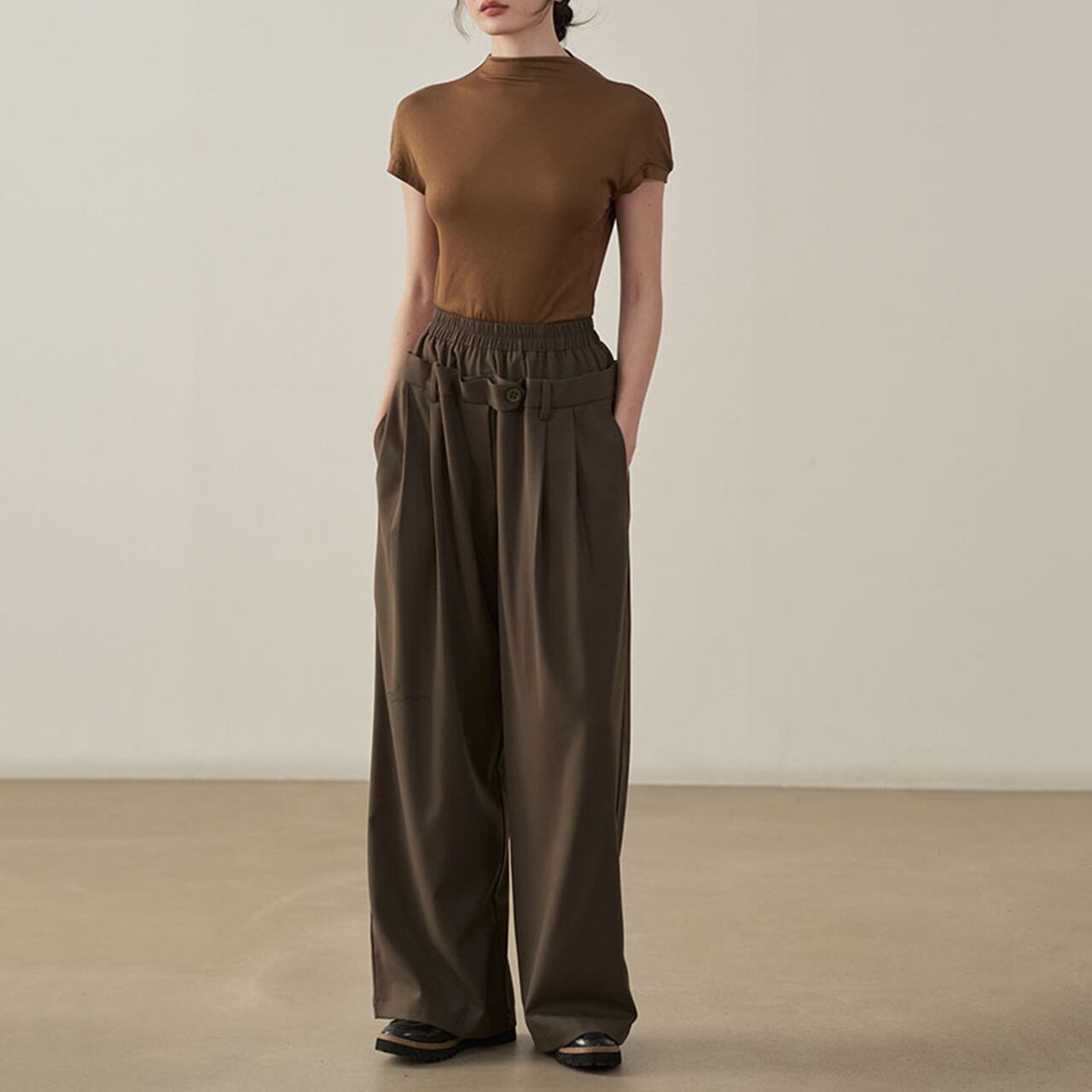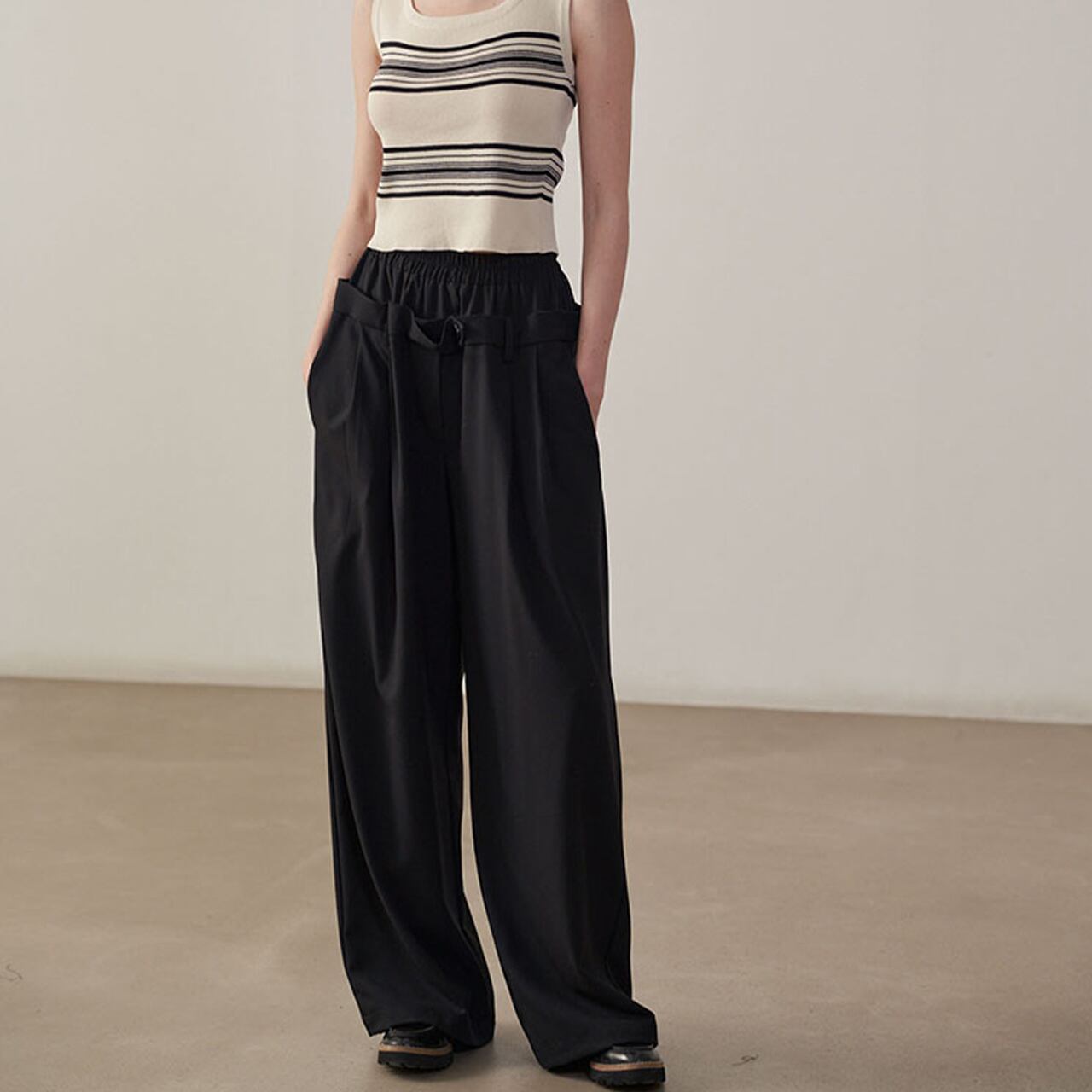 ダブルウエストデザインワイドパンツ /YT0092