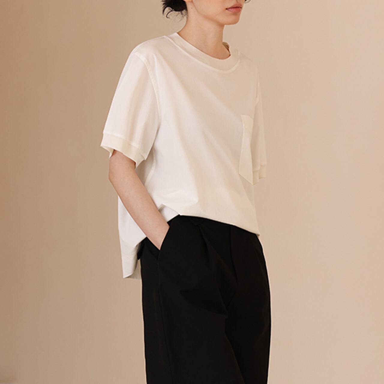 パッチポケットとヘンリーネックがカジュアルな雰囲気なTシャツ