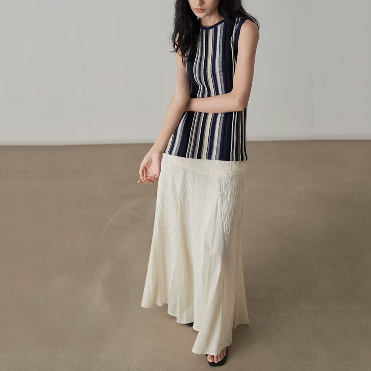 しなやかな素材で計算されたフレアラインが美しいシルエットのロングスカート 挑戦しやすいピタッとしないマーメイドデザイン、動いたときに揺れるシルエットが優雅さを演出 あわせるアイテム次第で自由自在に着こなせる、スタイリングの幅を広げてくれる1枚 【商品詳細】 サイズ:M,L ▼Mサイズ ウエスト68cm, ヒップ96cm, パンツ丈98cm ▼Lサイズ ウエスト72cm, ヒップ100cm, パンツ丈100cm (海外製品のため1~3㎝程度誤差がある場合がございます。) 素材:ポリエステル カラー:クリーム、ブラック ※着用モデル情報 身長・体重 166cm 45㎏ 着用サイズ M ■Evermodの人気商品一覧はこちらからご確認いただけます。 https://onlinestore.evermod.shop/categories/4311097 ■<送料無料まであと少し>の方は、プライス別にもアイテム検索できます。 https://onlinestore.evermod.shop/categories/5070150 【商品発送について】 こちらの商品は海外店舗より直接発送となる為、 ご入金から発送まで10日~3週間前後いただきます。 【注意事項】 ・タイミングによっては 商品在庫切れにより 注文キャンセルとさせていただく恐れもございますので、 予めご了承くださいませ。 ・こちらは輸入品となります。 日本製とは検品基準が異なる為、新品未使用品でも ごくわずかな汚れや傷がある場合もございます。 ・商品の色味は、お手持ちのスマートフォンの画面に よって実物と若干異なる場合がございます。 ・イメージ違いやサイズ交換等、お客さまご都合による 交換、返品は対応出来かねます。 ■(重要)ご購入前にこちら(Shop Guide)をお読みください https://onlinestore.evermod.shop/about
