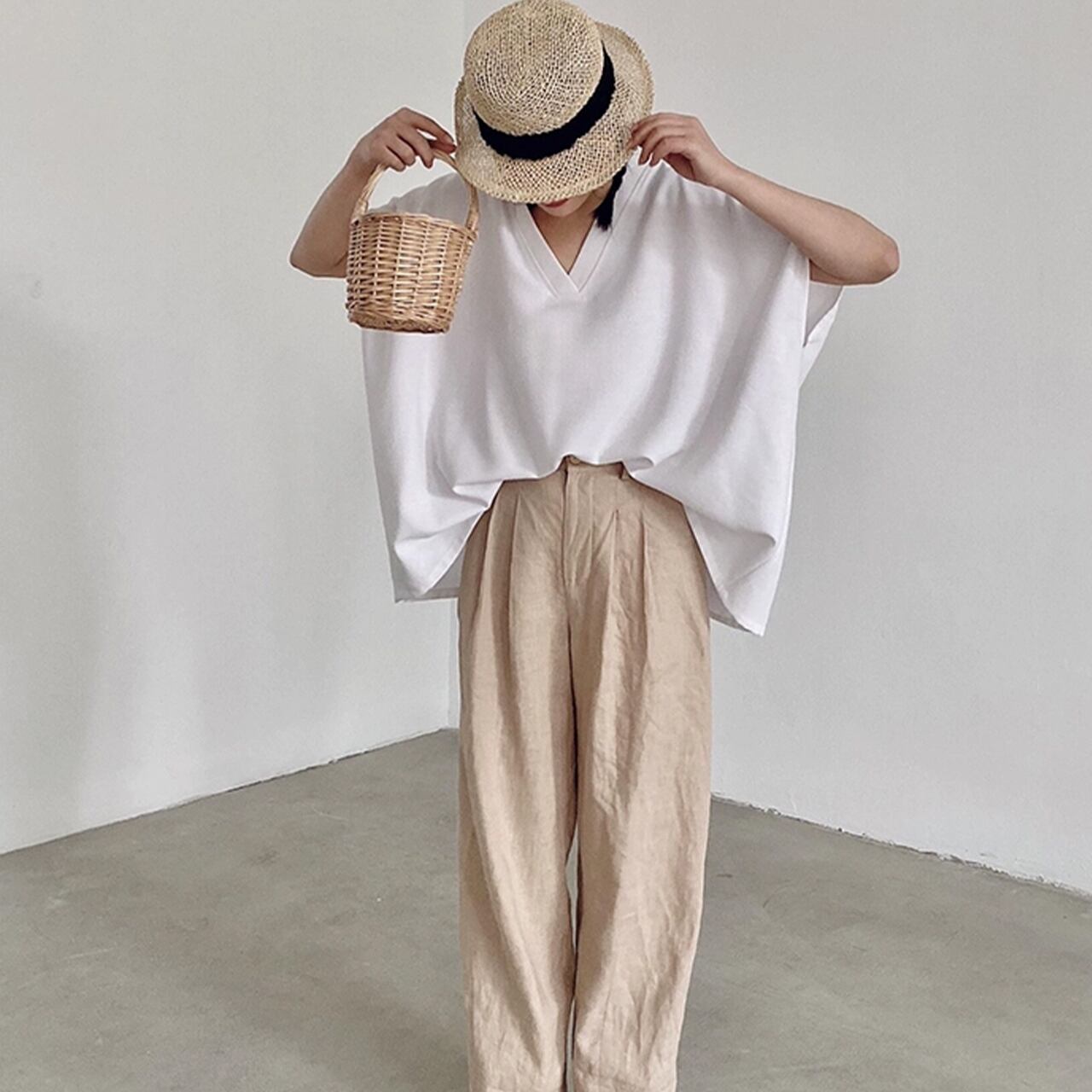 すっきりとしたVネックが爽やかな表情を演出してくれるカットソー