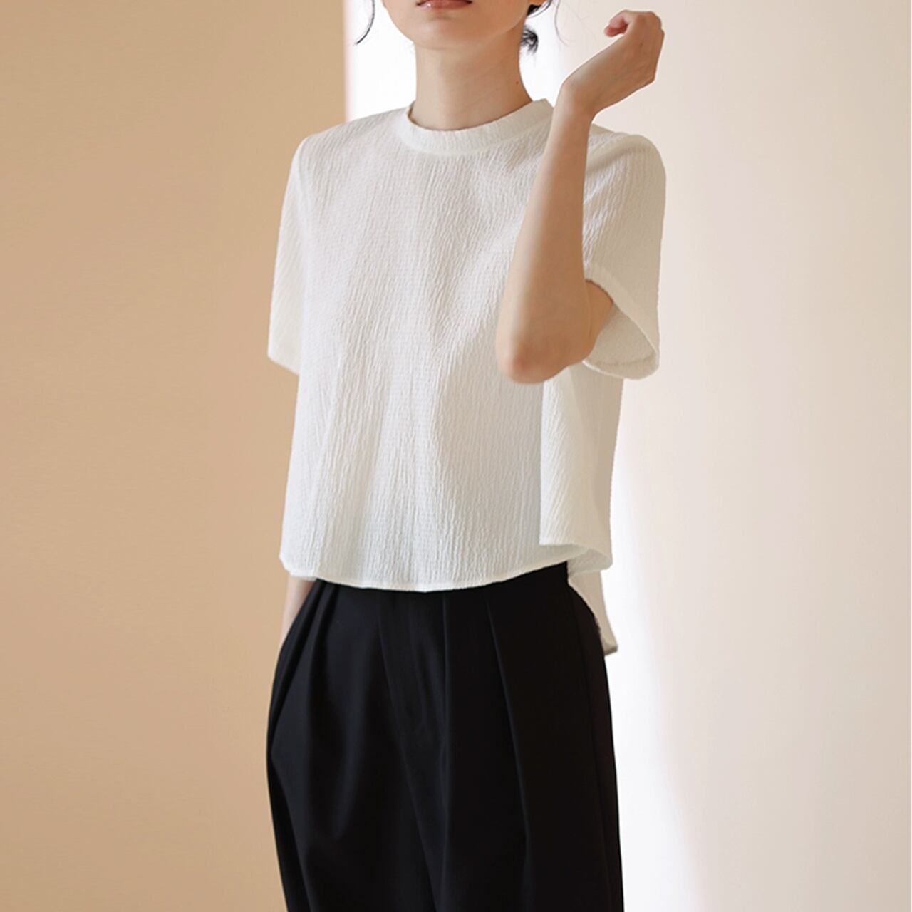 シワ加工が爽やかな印象のカットソー