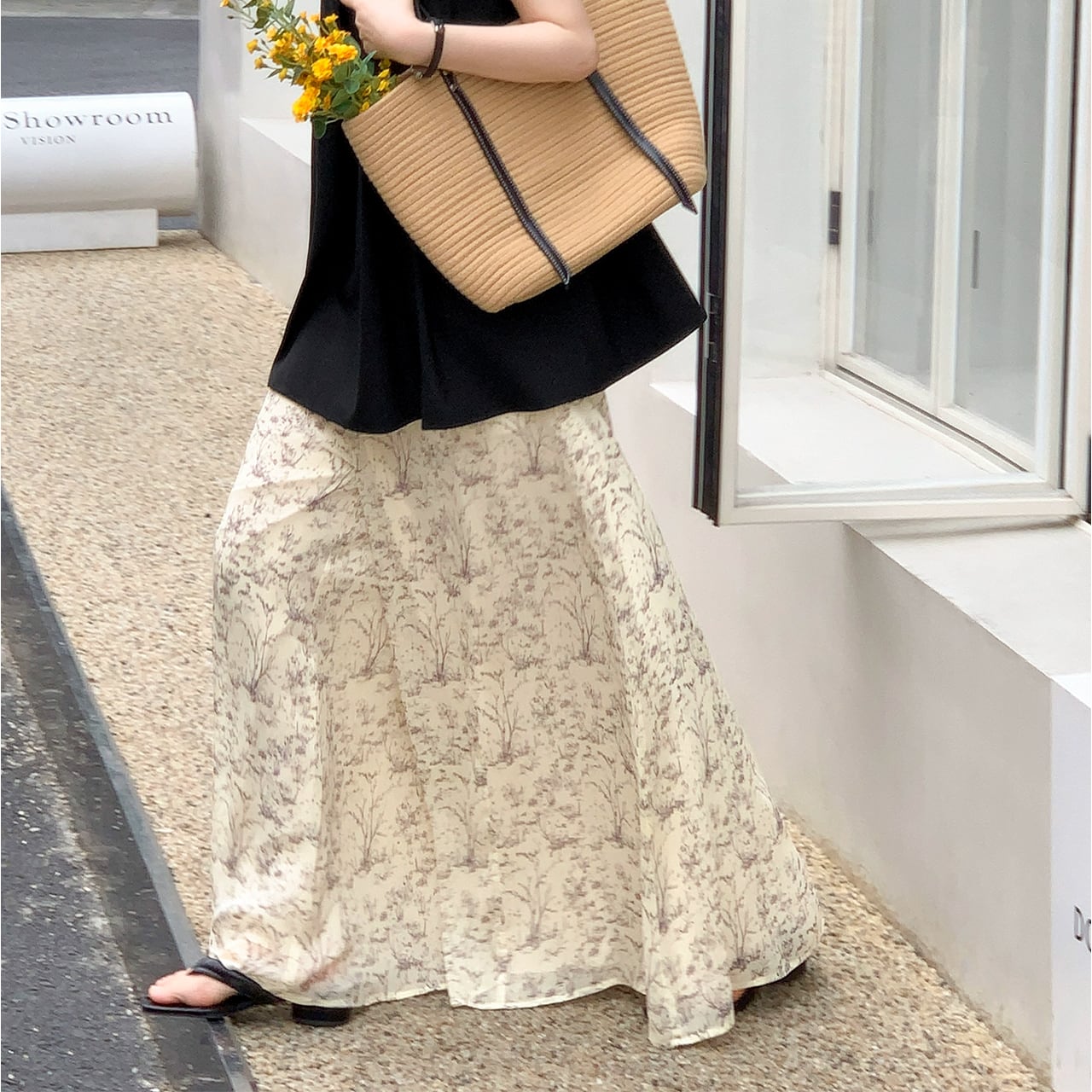 柔らかいカラーのドレープが美しいシフォン素材のワイドパンツ