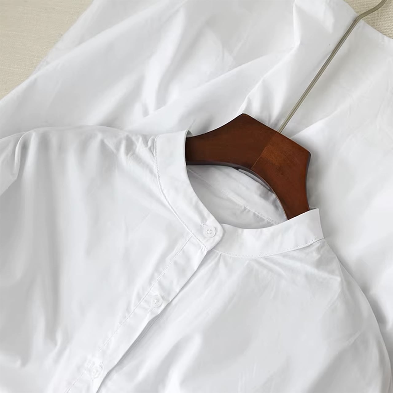 七分袖のスタンドカラーシャツ