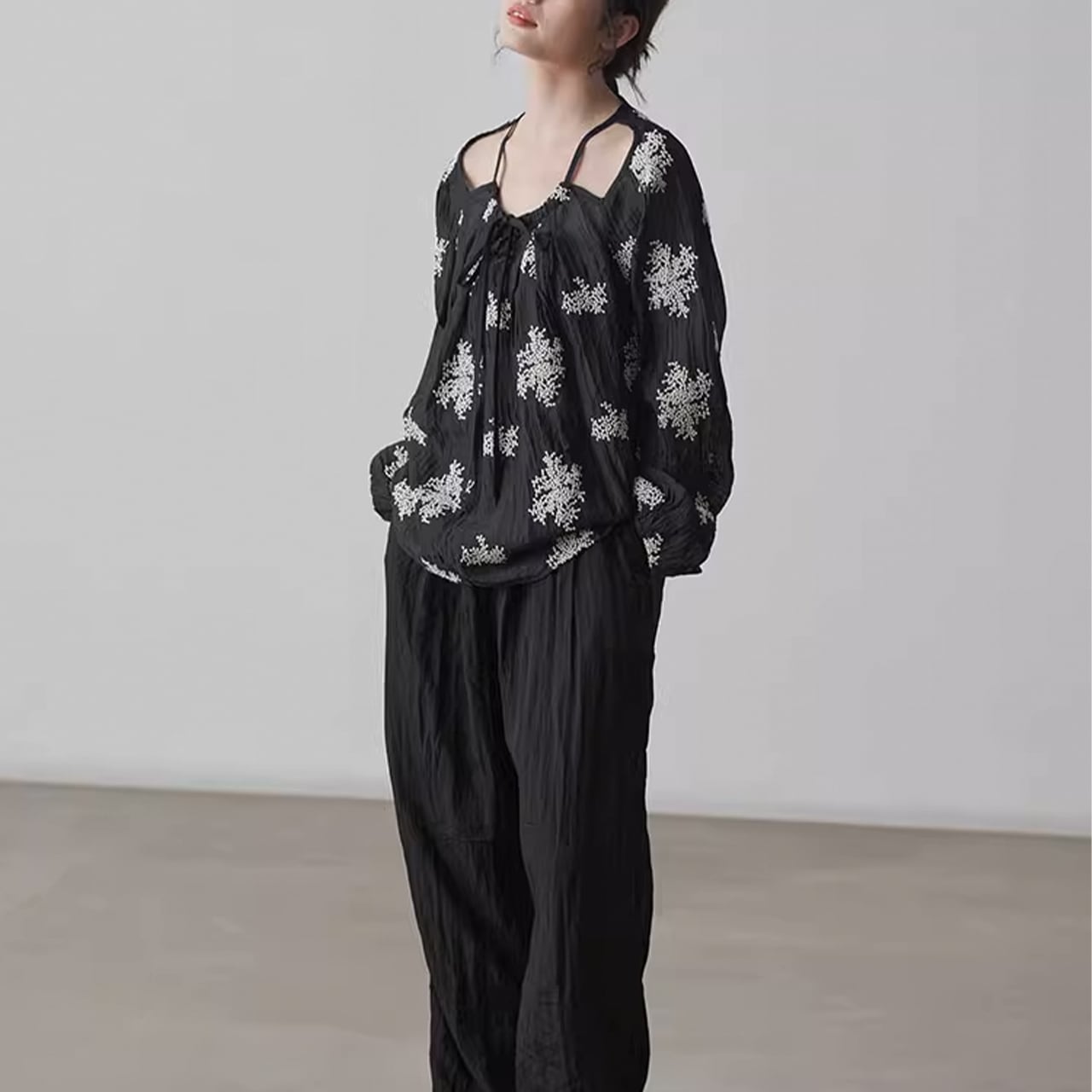 ふんわりとした透け感のある素材がシルエットを拾わずリラクシーな着心地