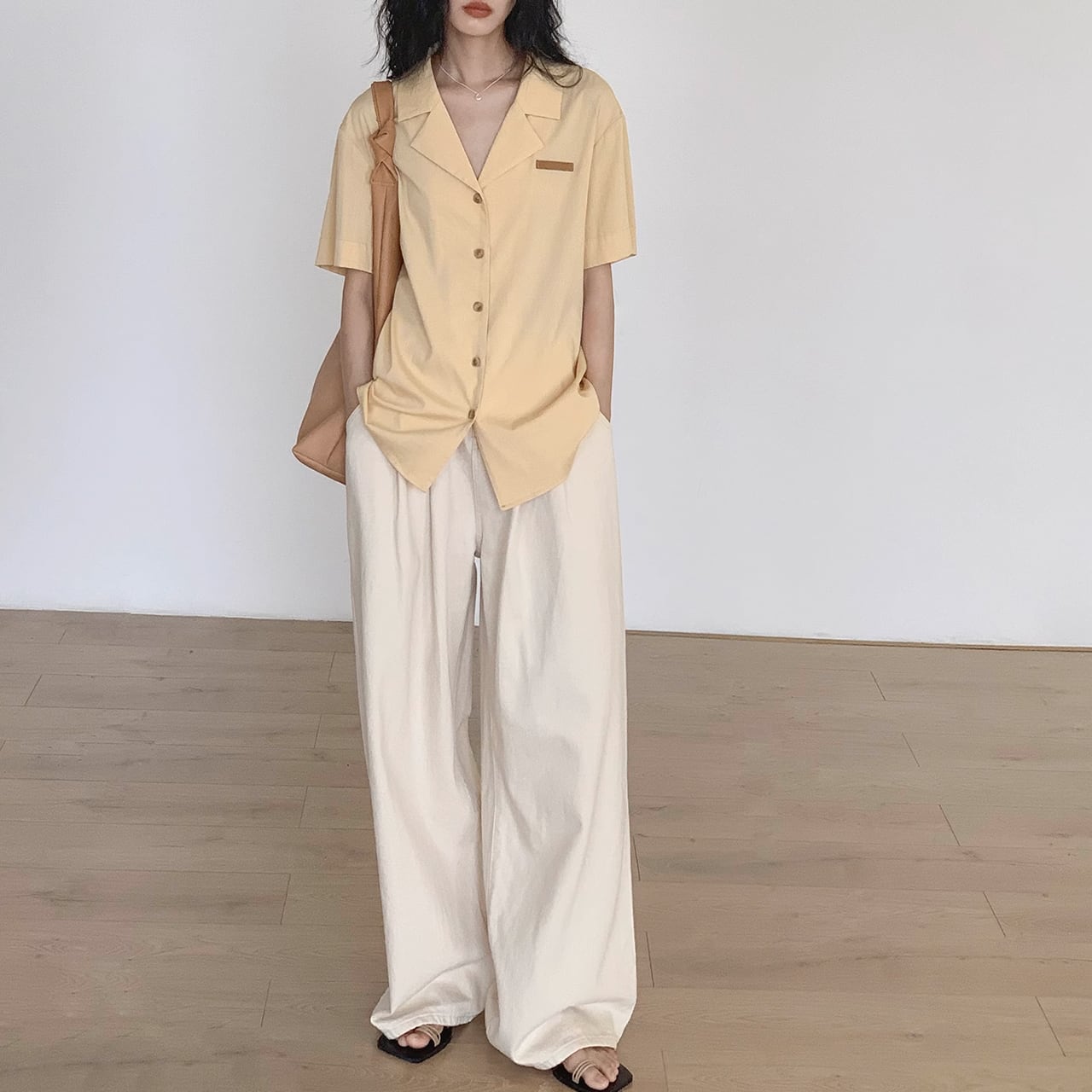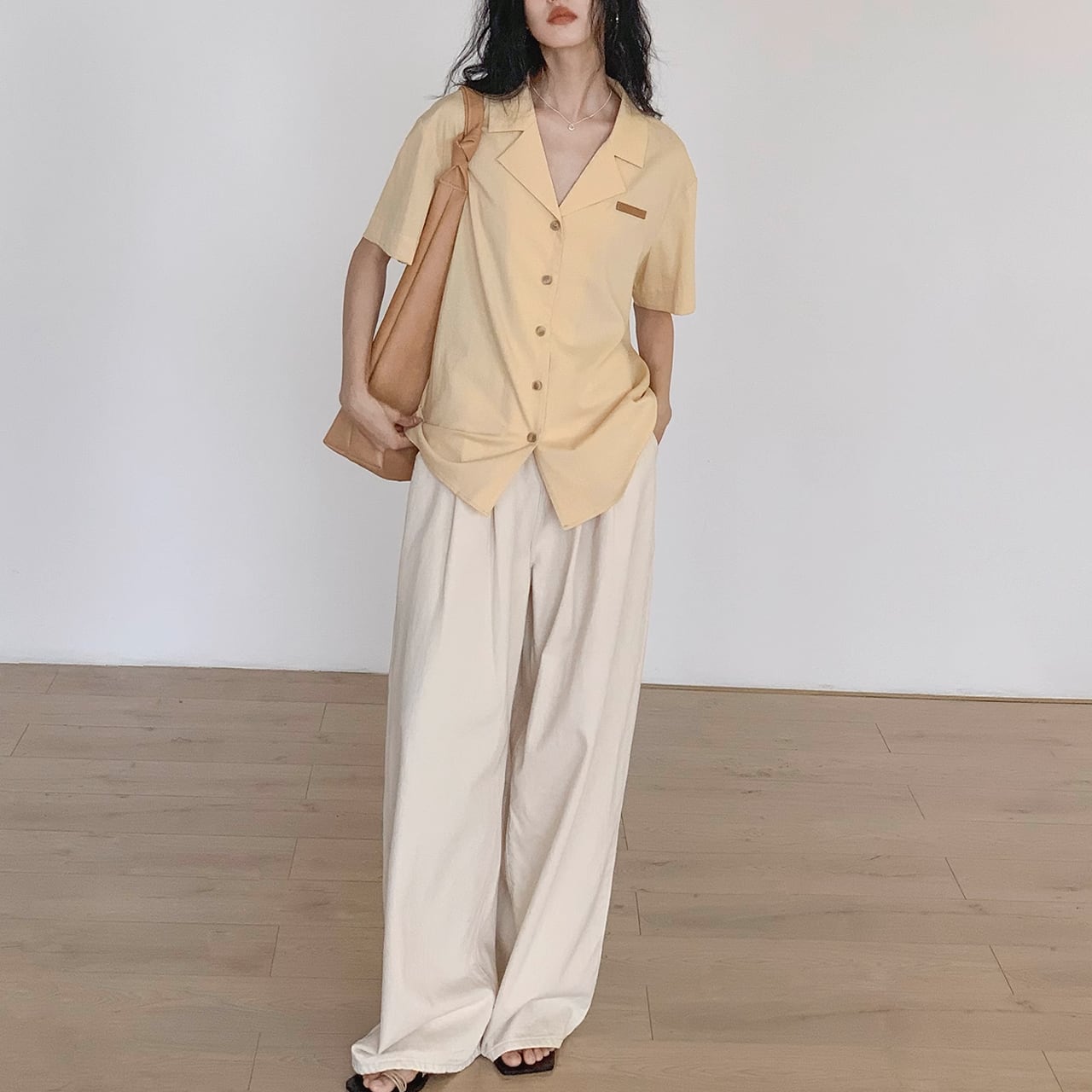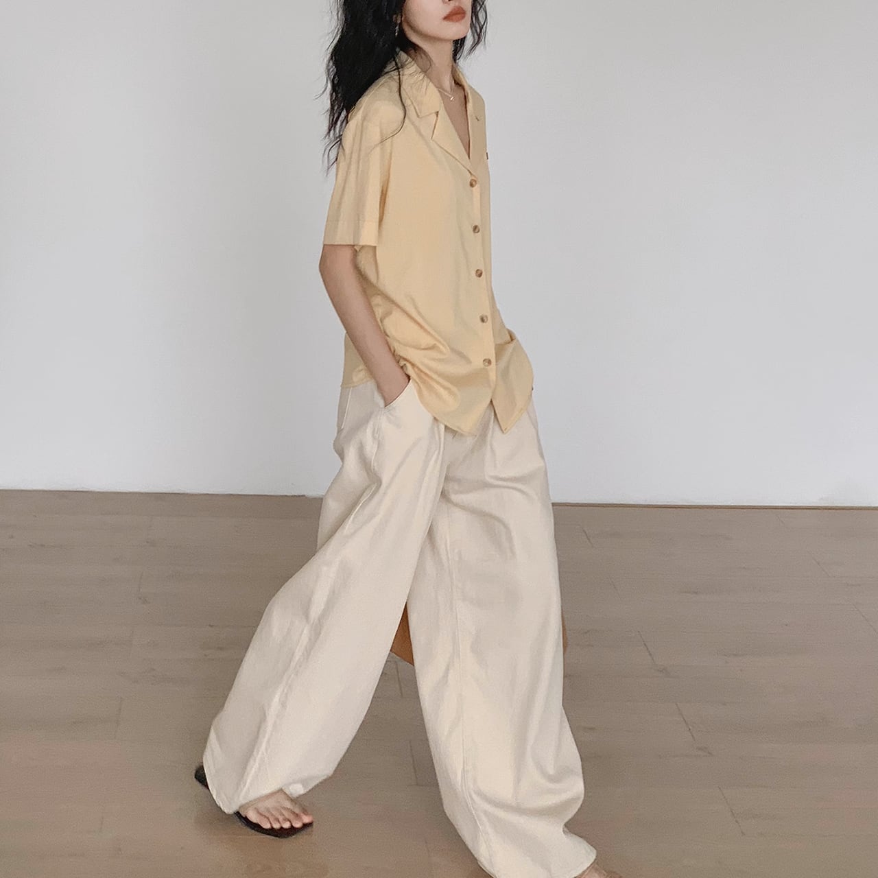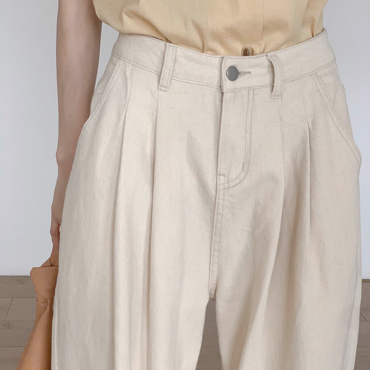 ストンと落ちるワイドシルエットが魅力のシンプルなタックパンツ