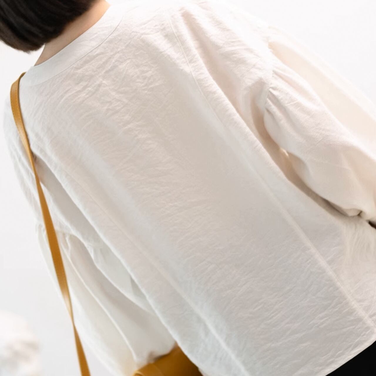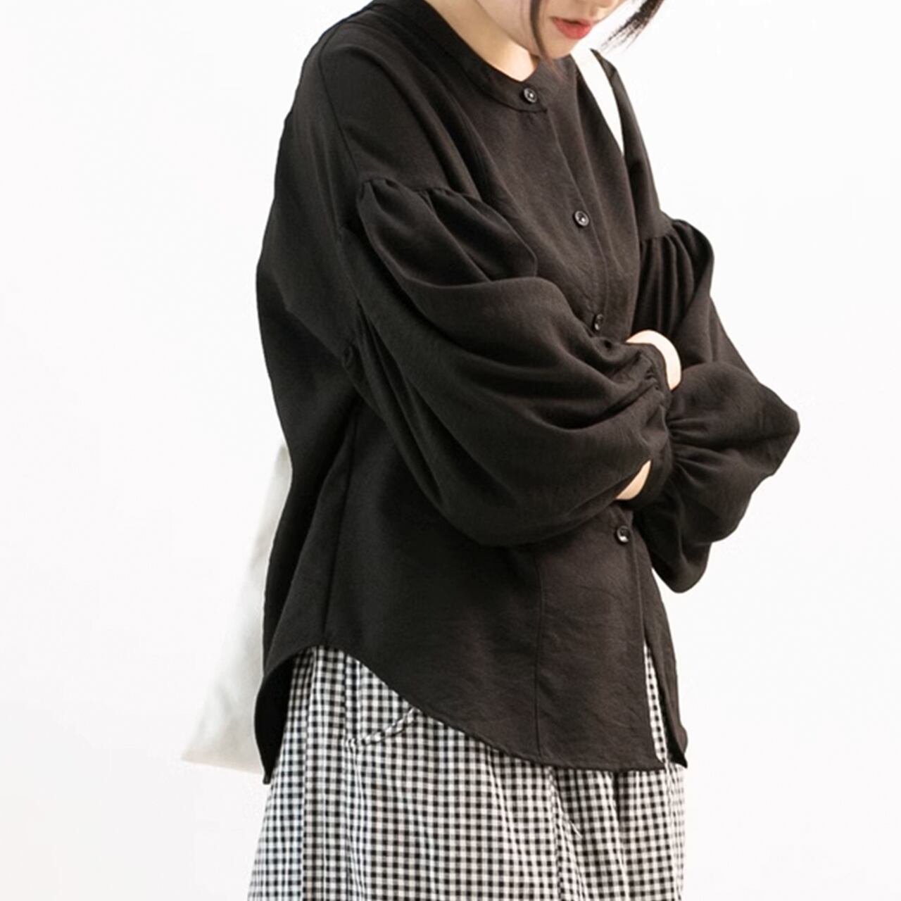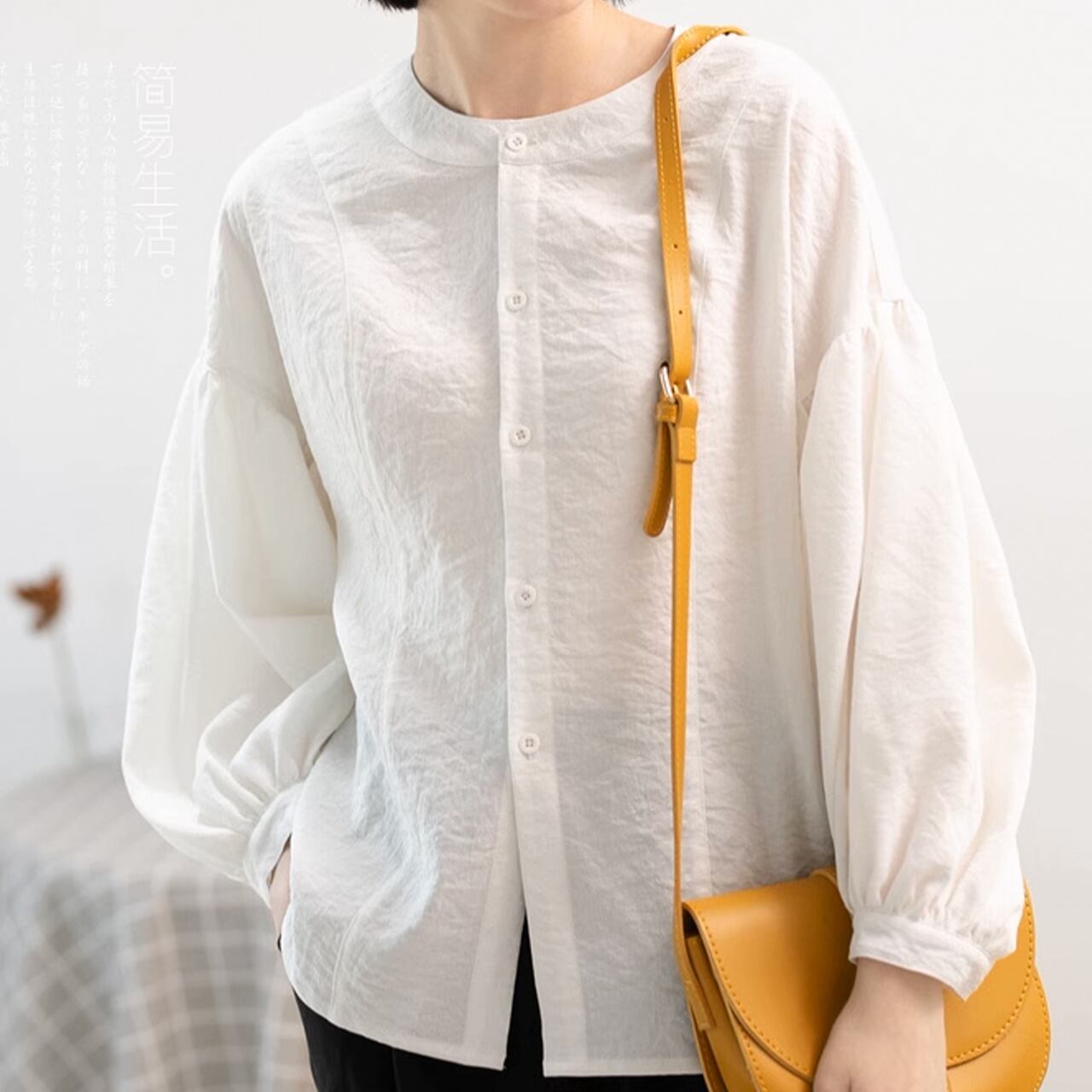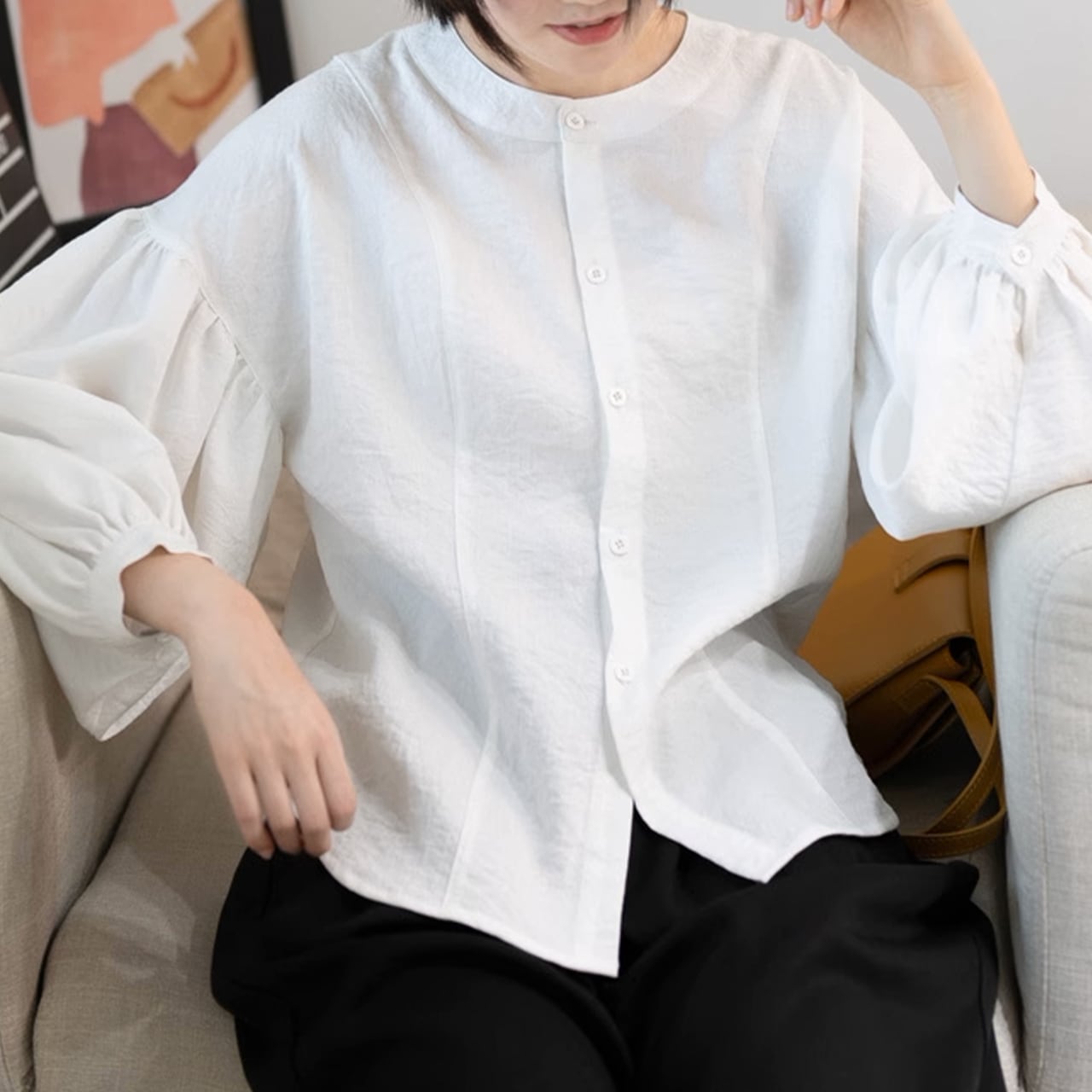 ノーカラーパフスリーブブラウス /YT0381