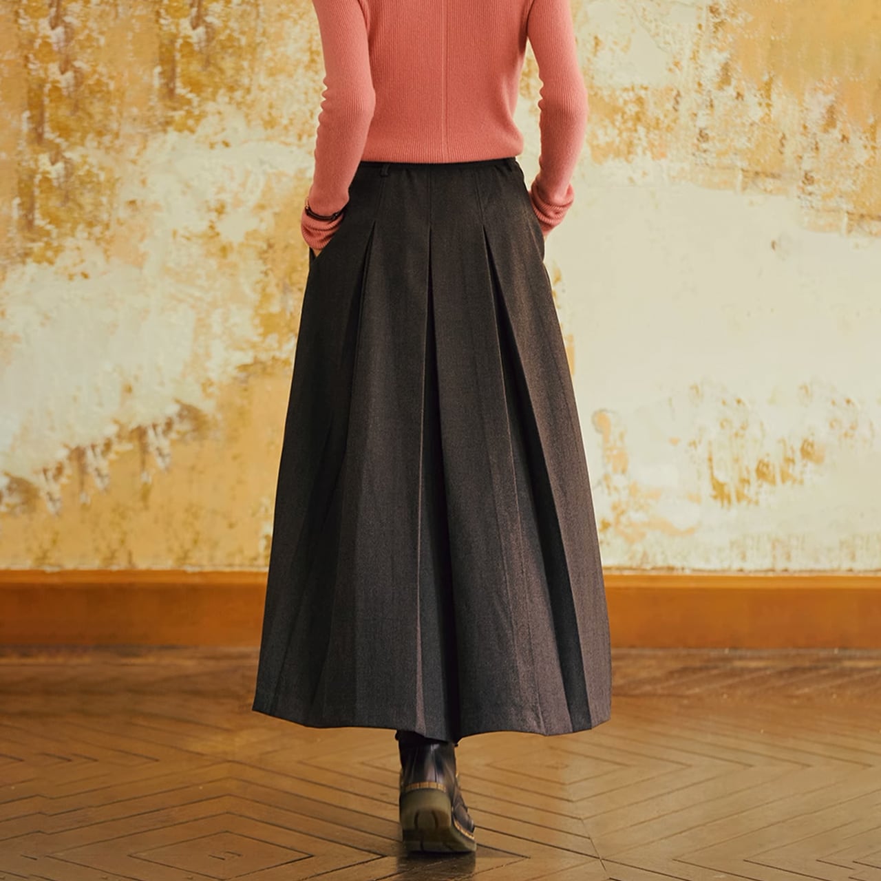 Aラインロングプリーツスカート /YT0408