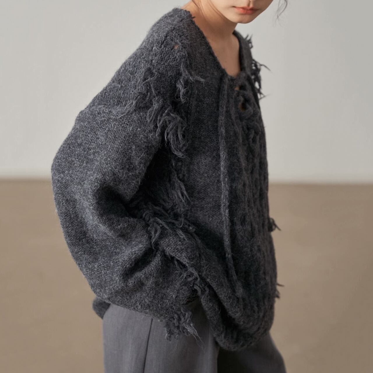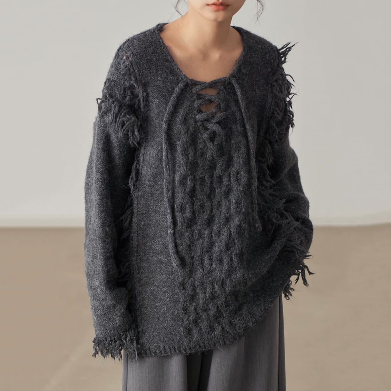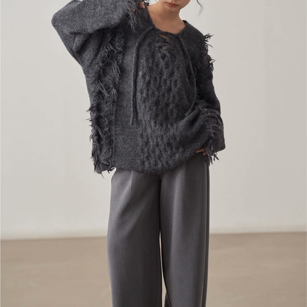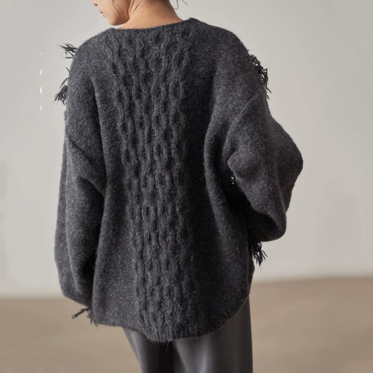 フリンジデザインが目を惹くニットプルオーバー