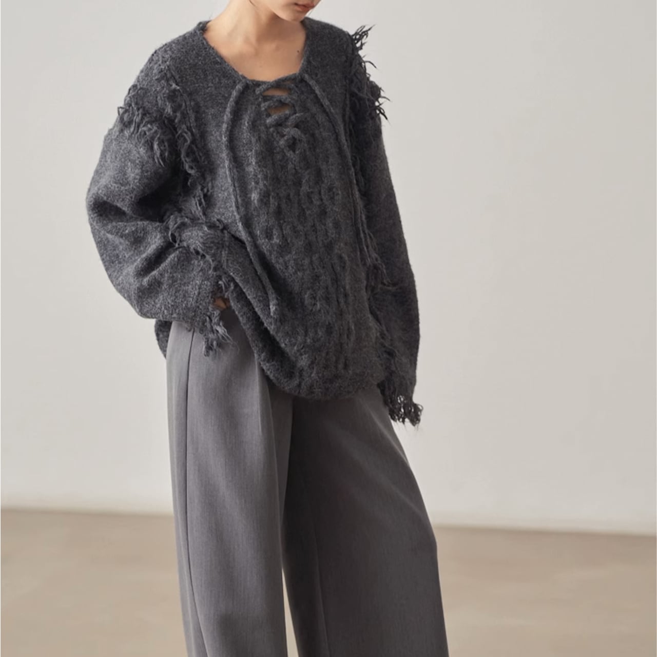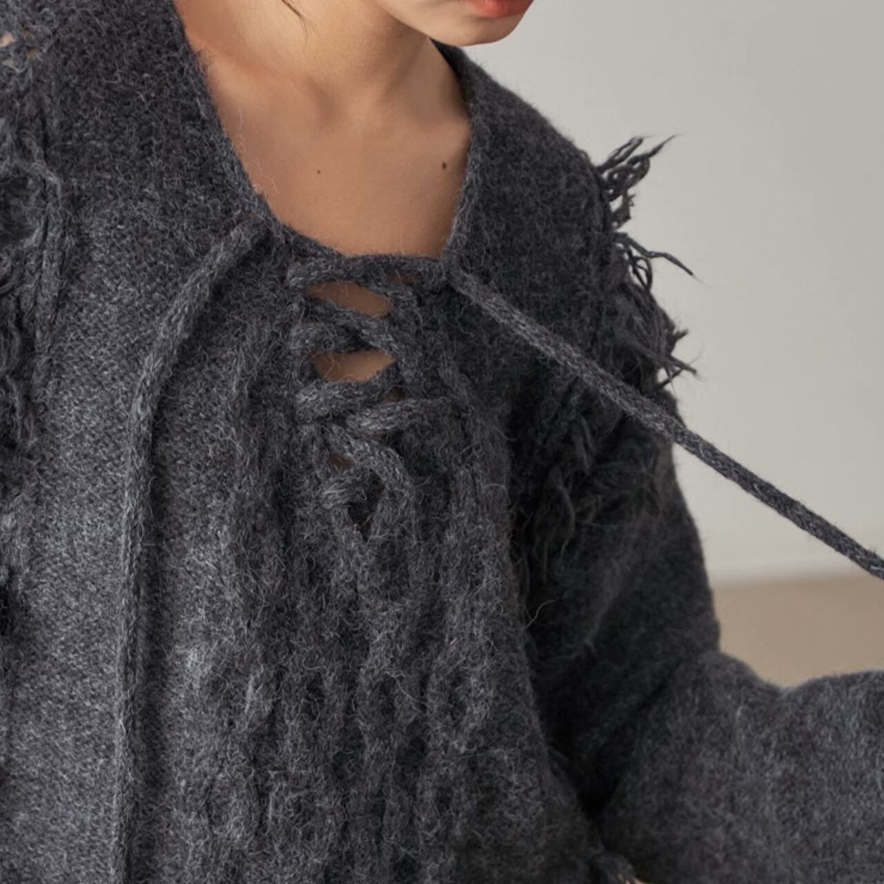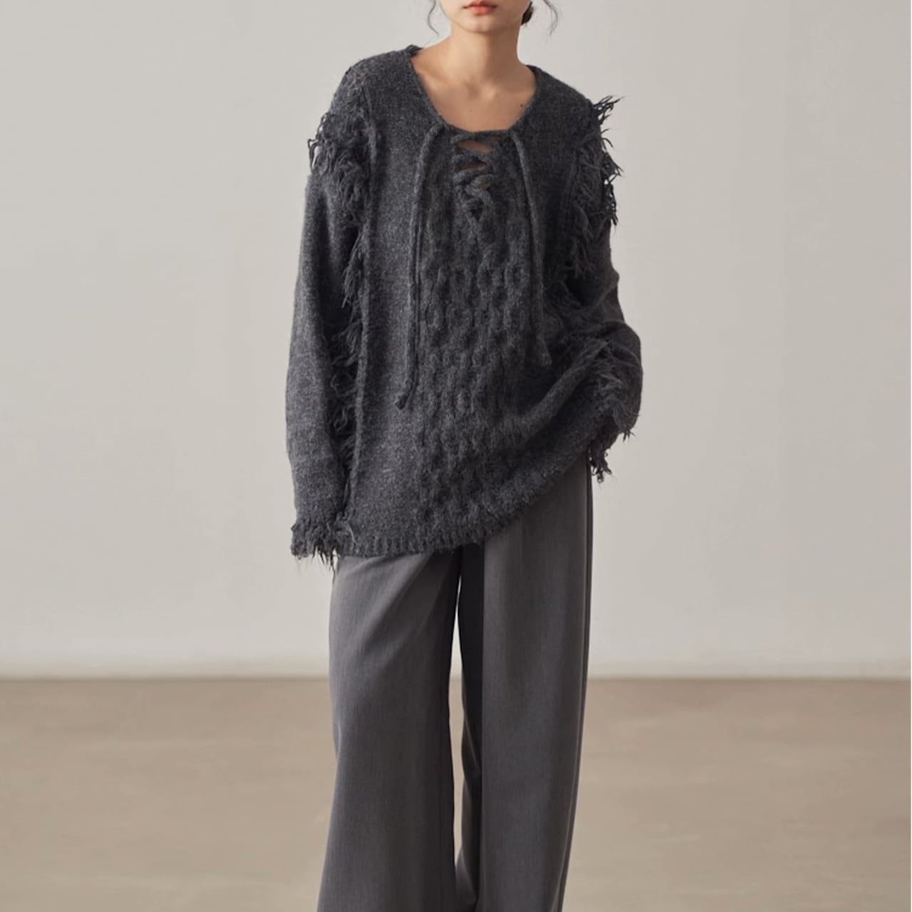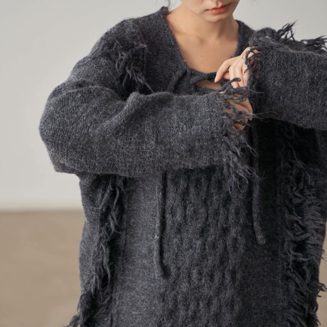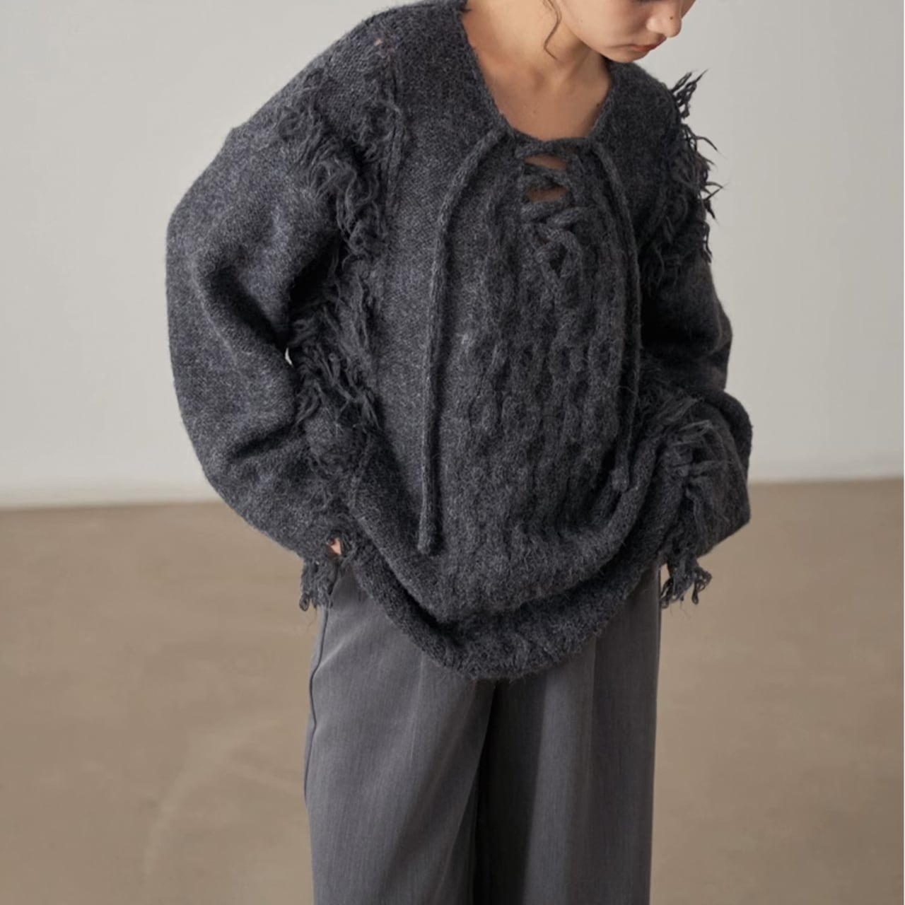 フリンジデザインが目を惹くニットプルオーバー