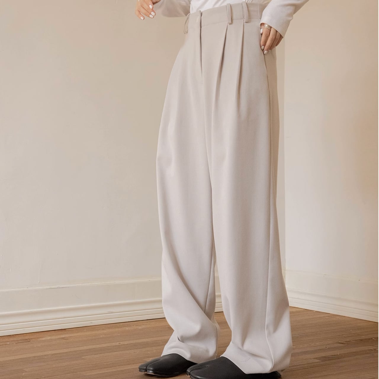 ラインが綺麗な美ワイドパンツ トレンドのワイドシルエットとタックが気になる脚のラインをカモフラージュしてくれる 【商品詳細】 サイズ:XS,S,M,L ▼XSサイズ ウエスト63cm, ヒップ119cm, わたり幅70cm, 裾幅46cm, パンツ丈97cm ▼Sサイズ ウエスト65cm, ヒップ121cm, わたり幅71cm, 裾幅47cm, パンツ丈103cm ▼Mサイズ ウエスト68cm, ヒップ124cm, わたり幅73cm, 裾幅48cm, パンツ丈105cm ▼Lサイズ ウエスト72cm, ヒップ128cm, わたり幅75cm, 裾幅50cm, パンツ丈107cm (海外製品のため1~3㎝程度誤差がある場合がございます。) 素材:ポリエステル、レーヨン、その他 カラー:石膏ホワイト、ライトピンク、グレー、ブラック ※着用モデル情報 身長・体重 163cm 45㎏ スリーサイズ 76㎝ 64cm 86cm 着用サイズ M ■Evermodの人気商品一覧はこちらからご確認いただけます。 https://onlinestore.evermod.shop/categories/4311097 ■<送料無料まであと少し>の方は、プライス別にもアイテム検索できます。 https://onlinestore.evermod.shop/categories/5070150 【商品発送について】 こちらの商品は海外店舗より直接発送となる為、 ご入金から発送まで10日~3週間前後いただきます。 【注意事項】 ・タイミングによっては 商品在庫切れにより 注文キャンセルとさせていただく恐れもございますので、 予めご了承くださいませ。 ・こちらは輸入品となります。 日本製とは検品基準が異なる為、新品未使用品でも ごくわずかな汚れや傷がある場合もございます。 ・商品の色味は、お手持ちのスマートフォンの画面に よって実物と若干異なる場合がございます。 ・イメージ違いやサイズ交換等、お客さまご都合による 交換、返品は対応出来かねます。 ■(重要)ご購入前にこちら(Shop Guide)をお読みください https://onlinestore.evermod.shop/about