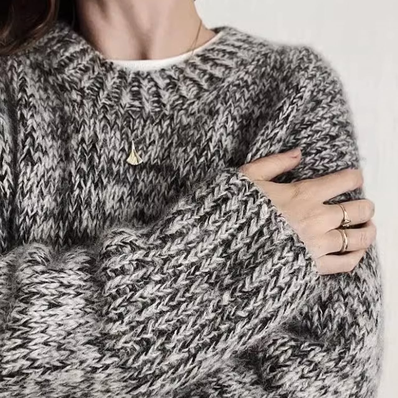 ニットらしい編み目の表情が楽しめるのが魅力のミックスカラーニット