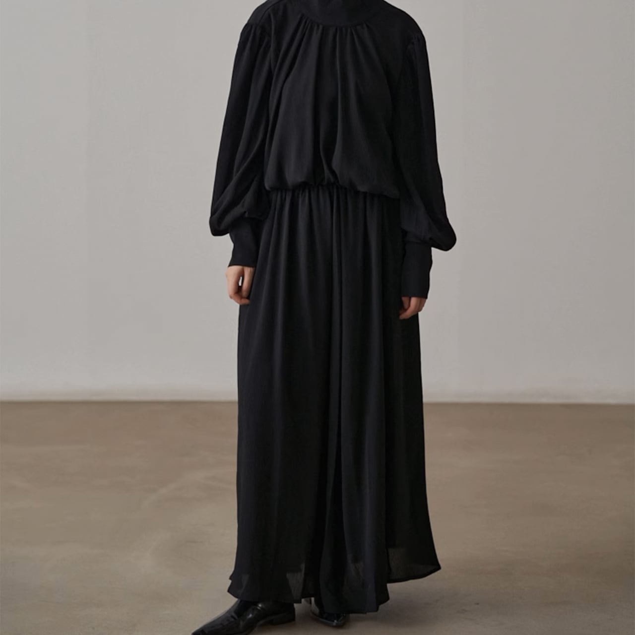 スタンドカラーバックリボンブラウス /YT0503との着用でワンピースのようなセットアップとしてもGood