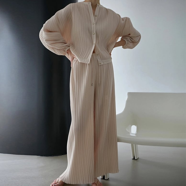 極細のプリーツ加工が目を惹くパンツスタイル上下セット ラグランシルエットのトップスは二の腕周りをカバー リラクシーなワイドパンツで余裕のある大人の着こなしを叶えます 【商品詳細】 サイズ:S、M、L、XL、2XL ▼Sサイズ 着丈64cm 胸囲112cm 肩幅41cm 袖丈25cm ボトム丈109cm ウエスト58cm ヒップ77cm ▼Mサイズ 着丈65cm 胸囲116cm 肩幅43cm 袖丈26cm ボトム丈110cm ウエスト62cm ヒップ79cm ▼Lサイズ 着丈66cm 胸囲120cm 肩幅45cm 袖丈27cm ボトム丈111cm ウエスト66cm ヒップ81cm ▼XLサイズ 着丈67cm 胸囲124cm 肩幅47cm 袖丈28cm ボトム丈112cm ウエスト70cm ヒップ83cm ▼2XLサイズ 着丈68cm 胸囲128cm 肩幅49cm 袖丈29cm ボトム丈113cm ウエスト74cm ヒップ85cm (海外製品のため1~3㎝程度誤差がある場合がございます。) カラー:クリーム ■Evermodの人気商品一覧はこちらからご確認いただけます。 https://onlinestore.evermod.shop/categories/4311097 ■<送料無料まであと少し>の方は、プライス別にもアイテム検索できます。 https://onlinestore.evermod.shop/categories/5070150 【商品発送について】 こちらの商品は海外店舗より直接発送となる為、 ご入金から発送まで10日~3週間前後いただきます。 【注意事項】 ・タイミングによっては 商品在庫切れにより 注文キャンセルとさせていただく恐れもございますので、 予めご了承くださいませ。 ・こちらは輸入品となります。 日本製とは検品基準が異なる為、新品未使用品でも ごくわずかな汚れや傷がある場合もございます。 ・商品の色味は、お手持ちのスマートフォンの画面に よって実物と若干異なる場合がございます。 ・イメージ違いやサイズ交換等、お客さまご都合による 交換、返品は対応出来かねます。 ■(重要)ご購入前にこちら(Shop Guide)をお読みください https://onlinestore.evermod.shop/about