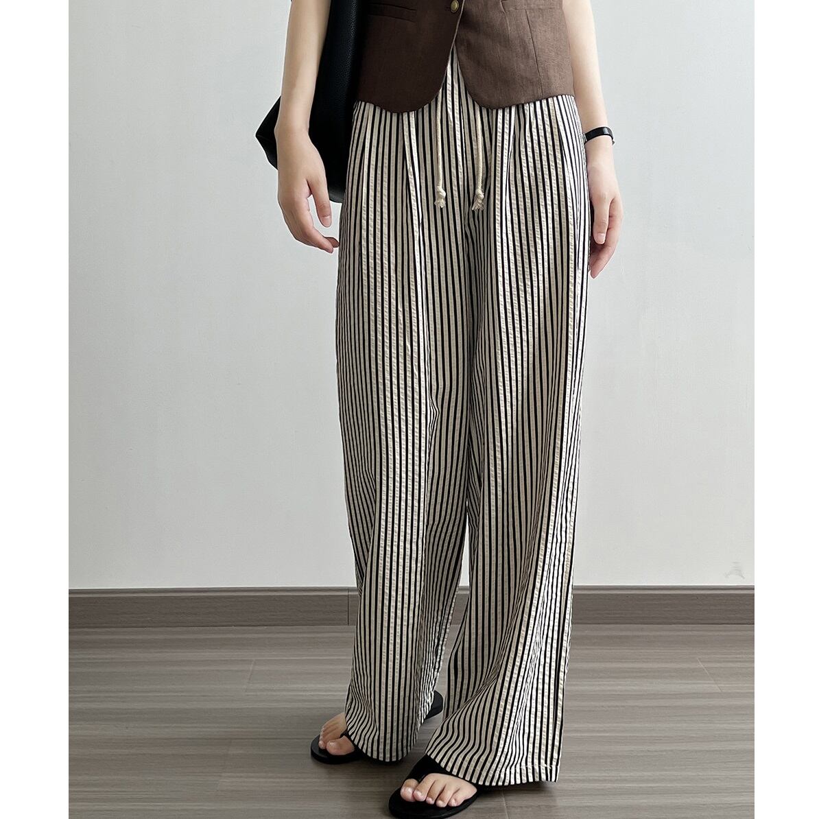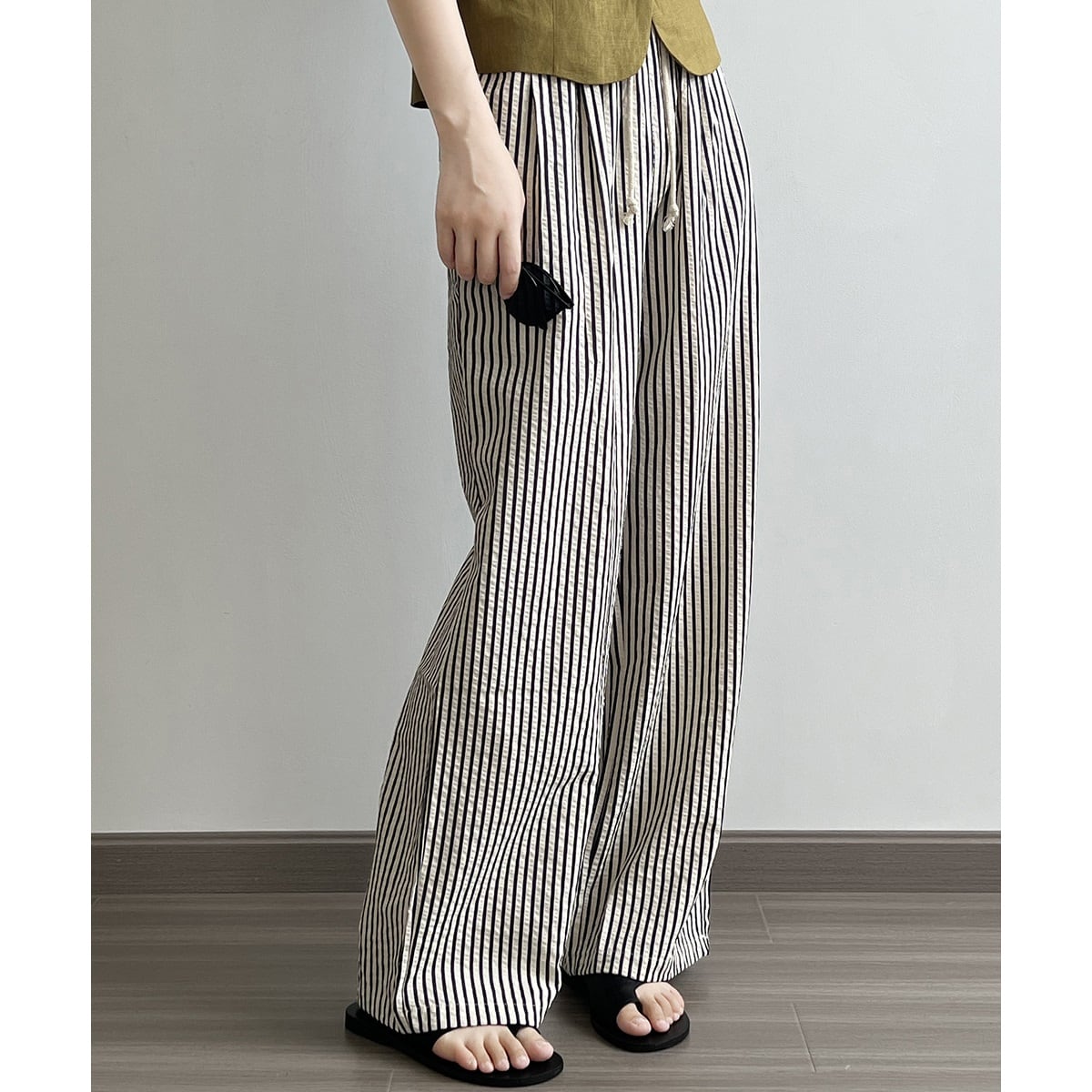 カジュアルな雰囲気漂うストライプ柄ワイドレッグパンツ。