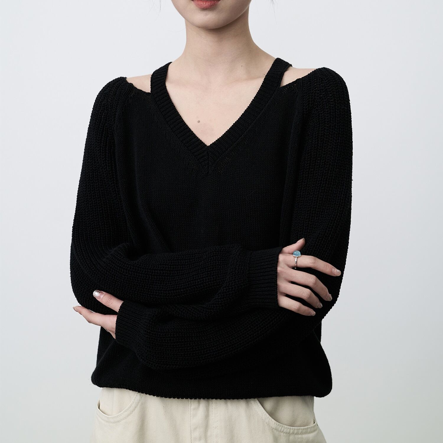 カットアウトVネックニット SG0074