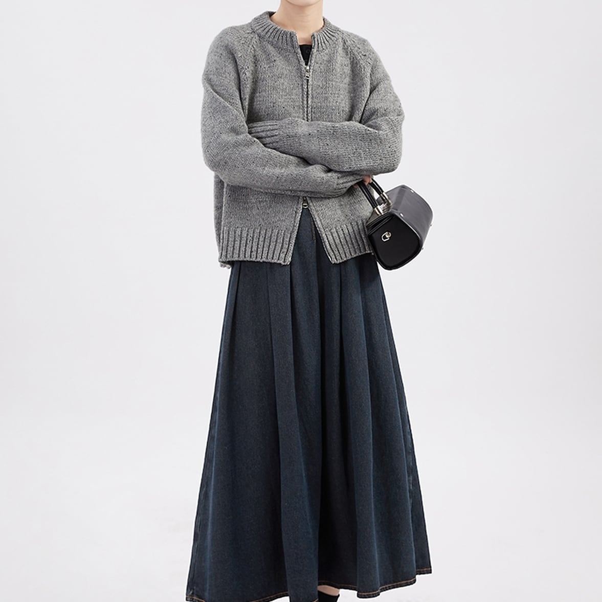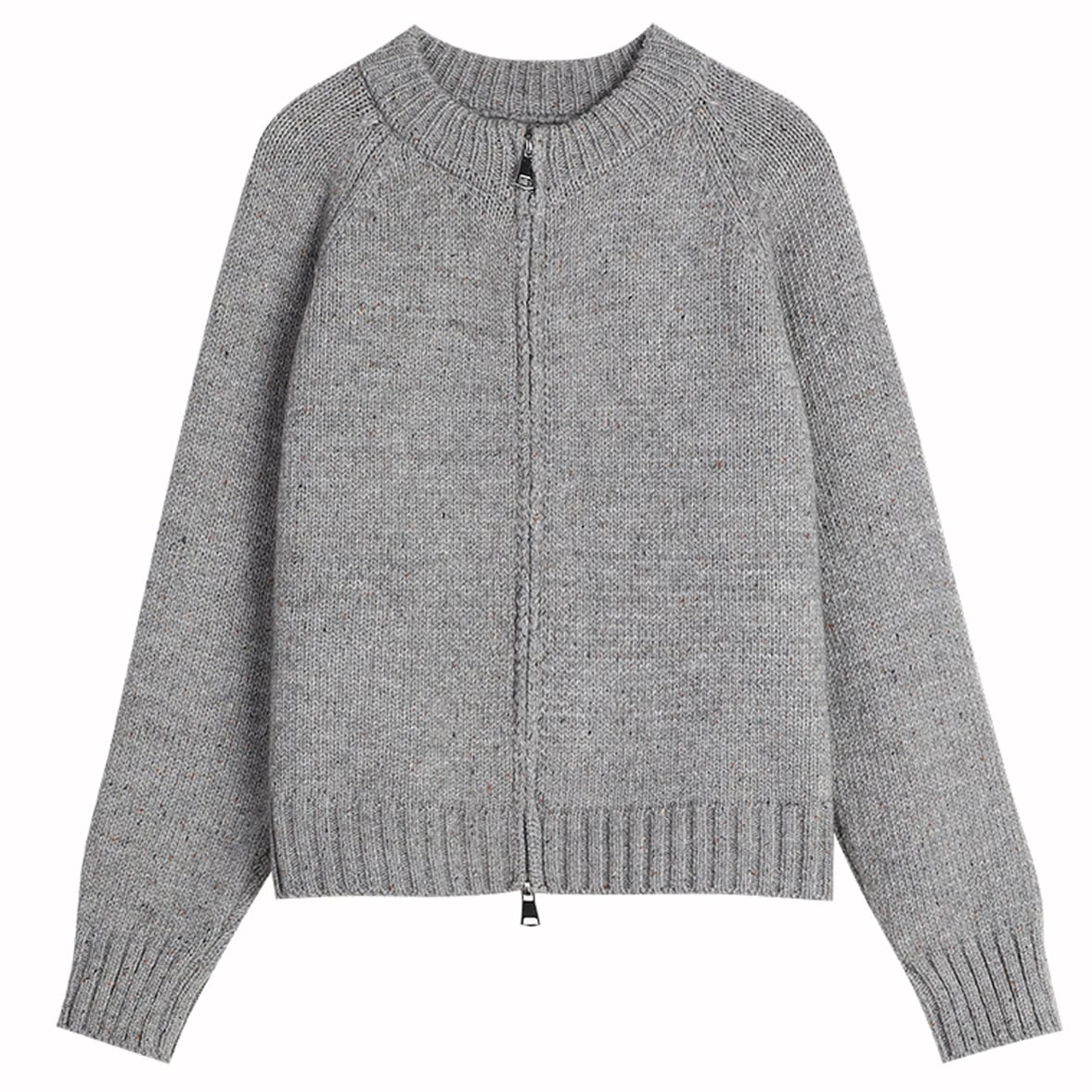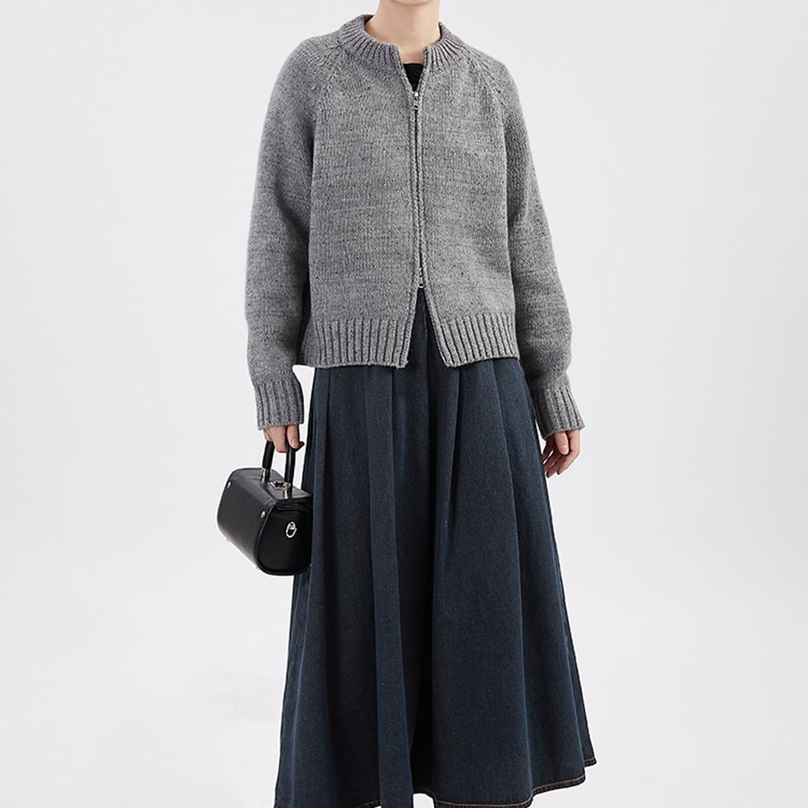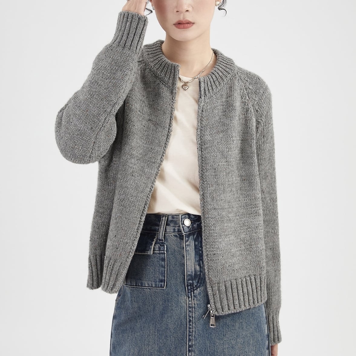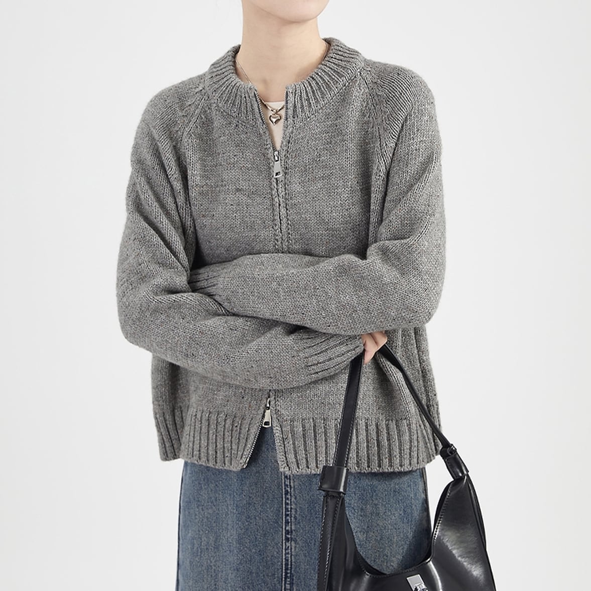 上下ダブルジップでアレンジが広がるクルーネックニットカーディガンです