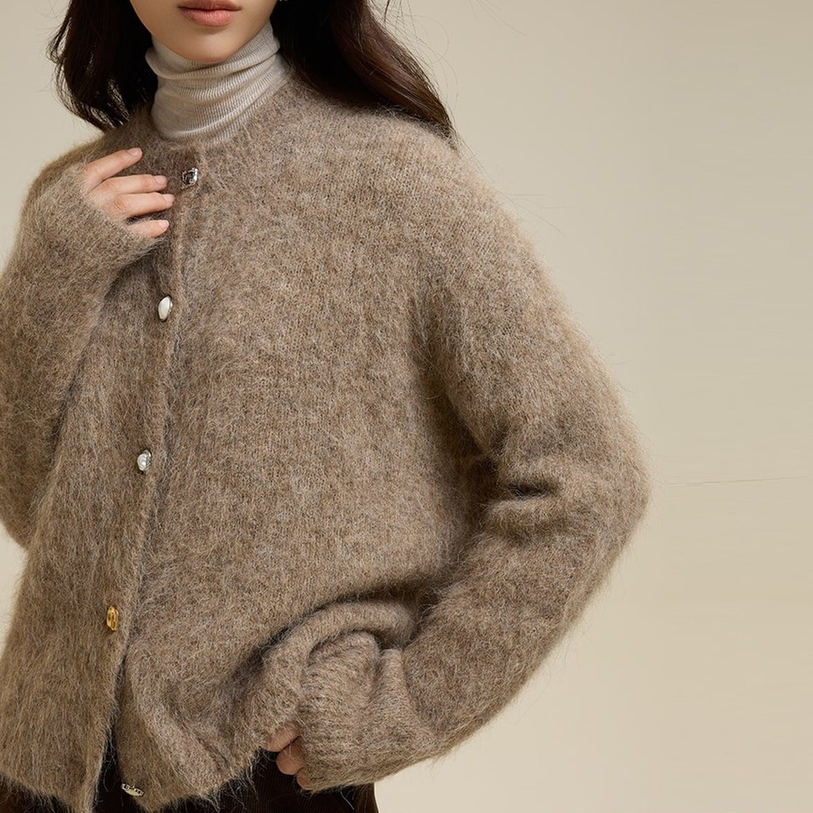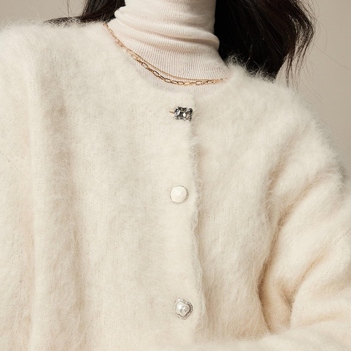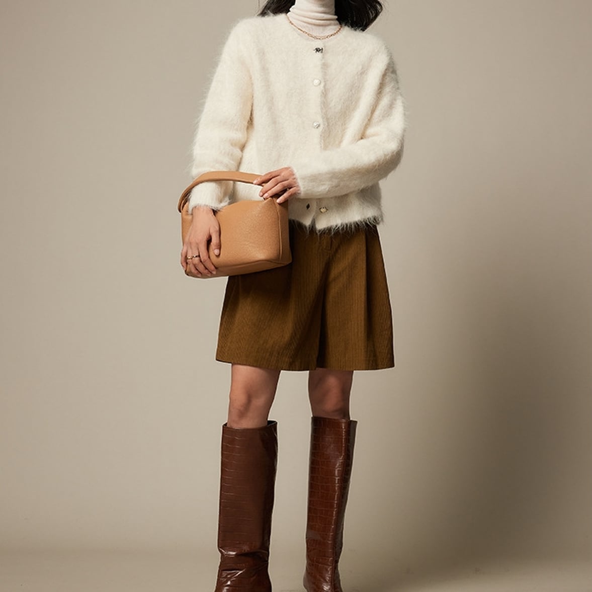 ふわふわのシャギーニットでシーズンムードを盛り立てます