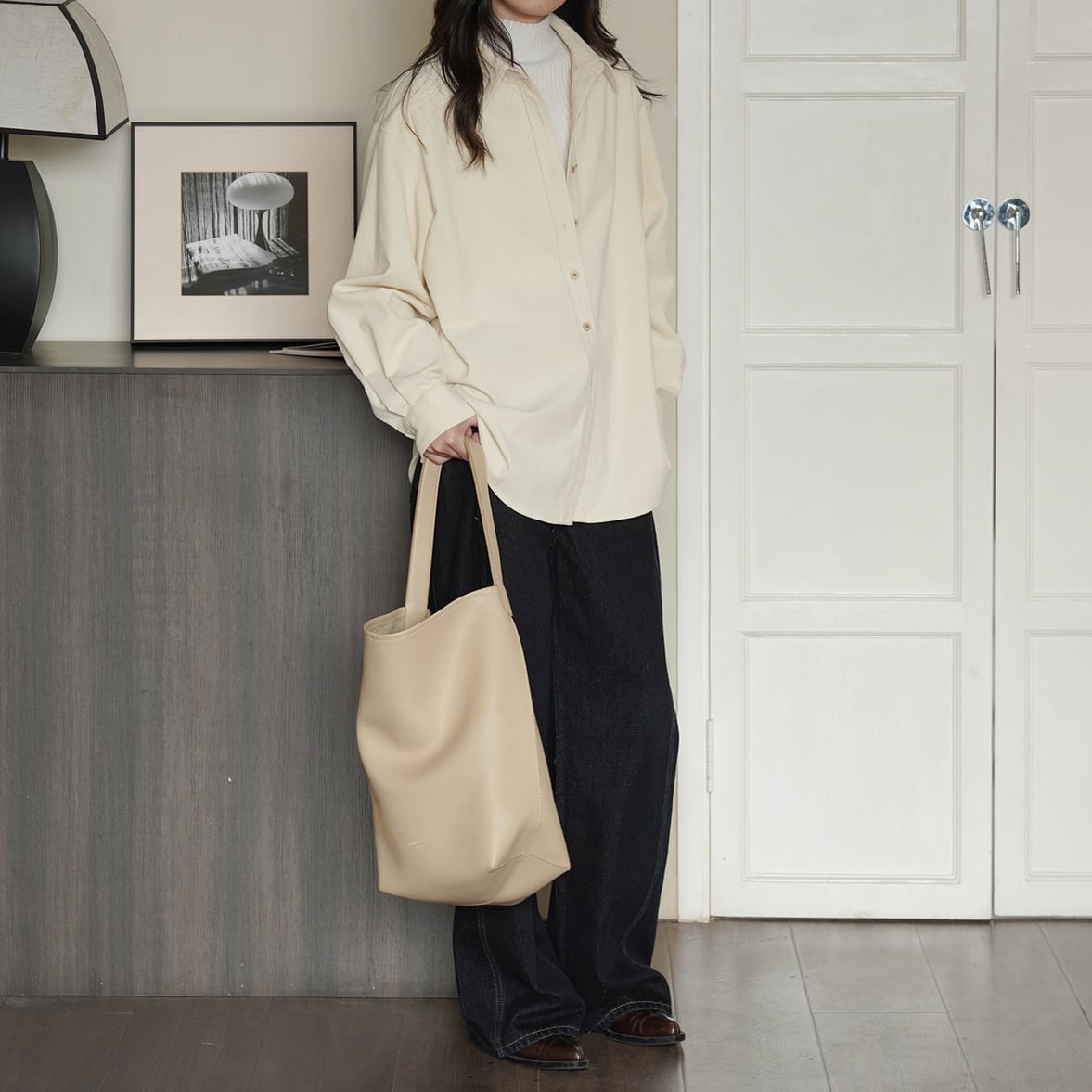 ワイドめのシルエットなので1枚できるのはもちろん羽織ってレイヤードを楽しむのもおすすめ