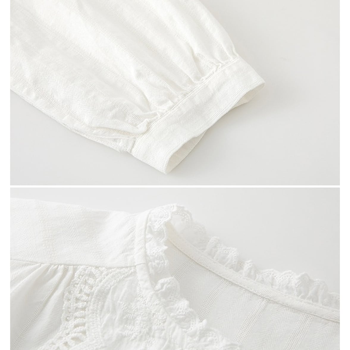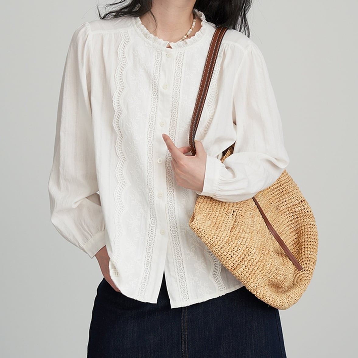 ナチュラルで繊細な雰囲気のレースがポイントのシャツブラウス